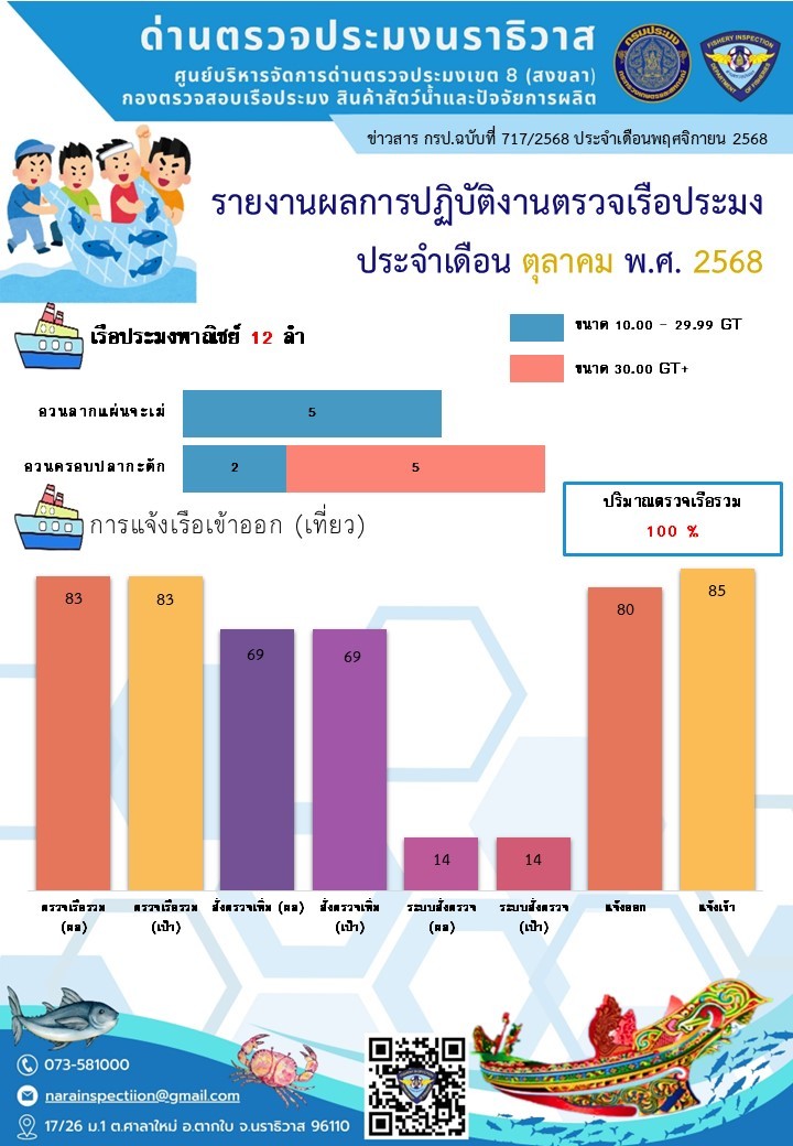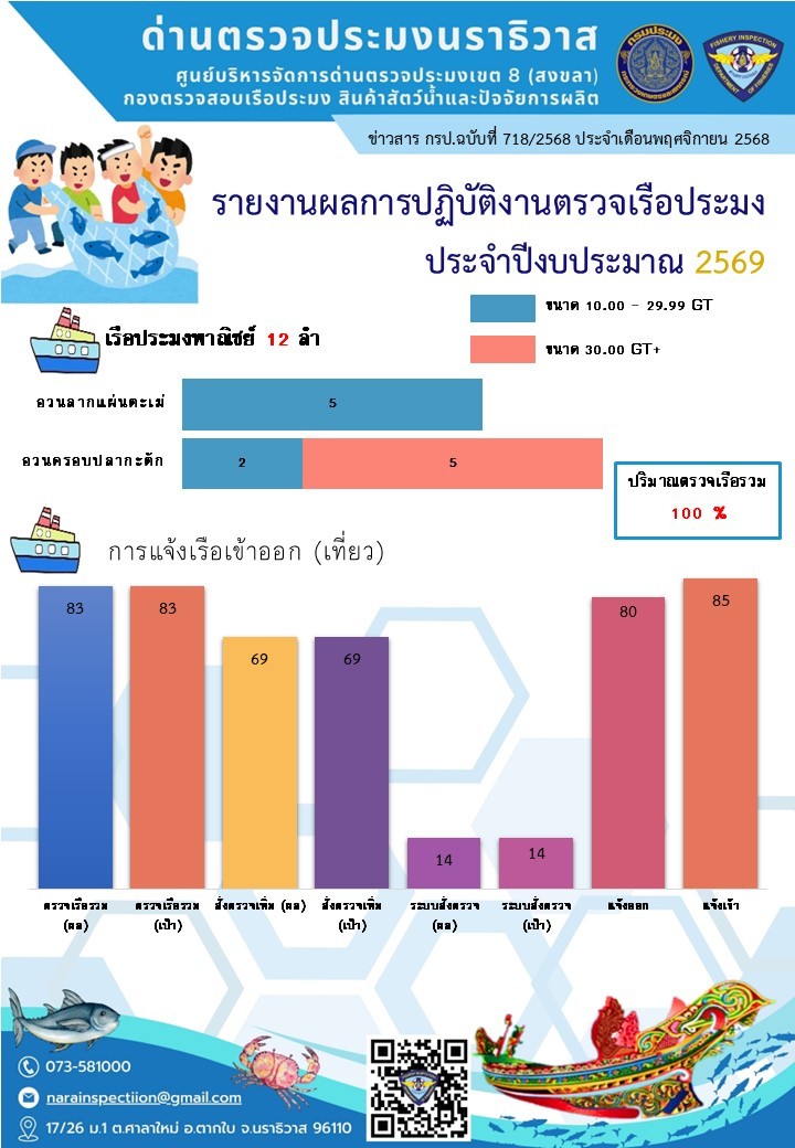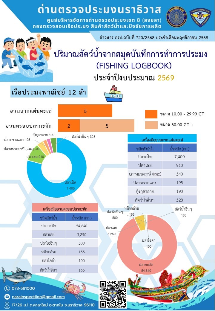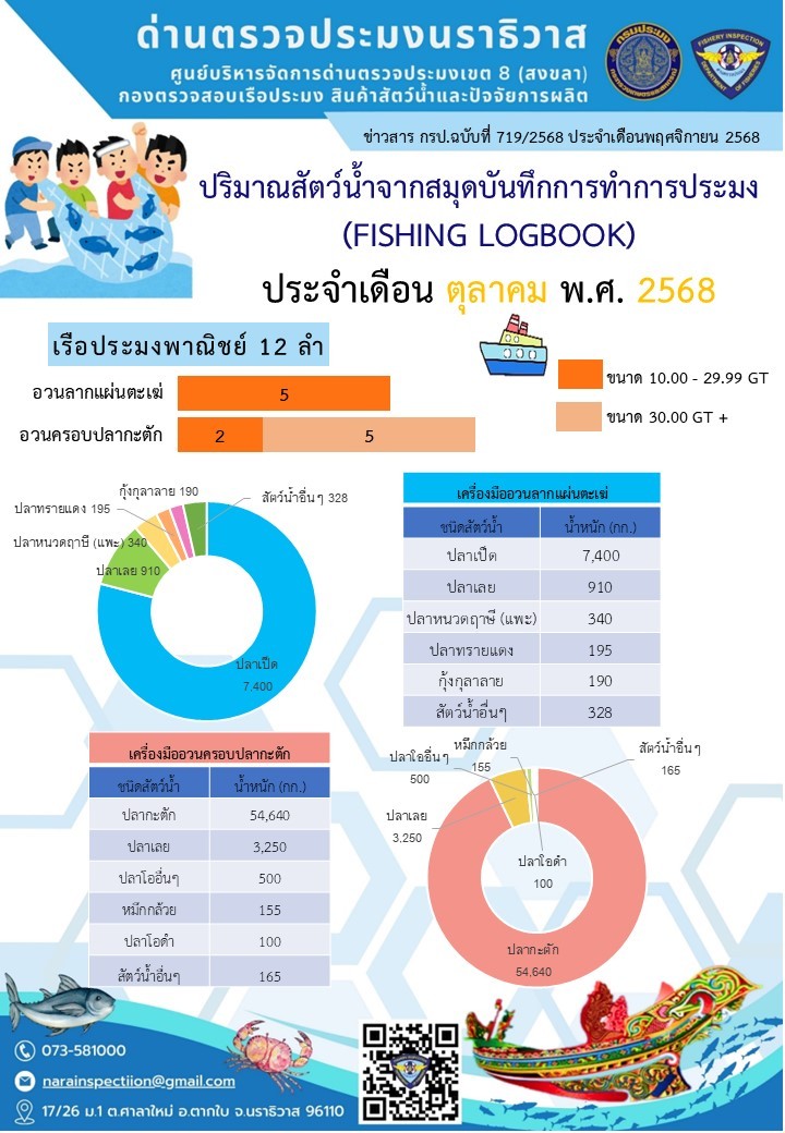 สรุปผลรายงานปริมาณสัตว์น้ำจากสมุดบันทึกการทำการประมง ประจำเดือนตุลาคม 2568 และประจำปีงบประมาณ พ.ศ. 2569