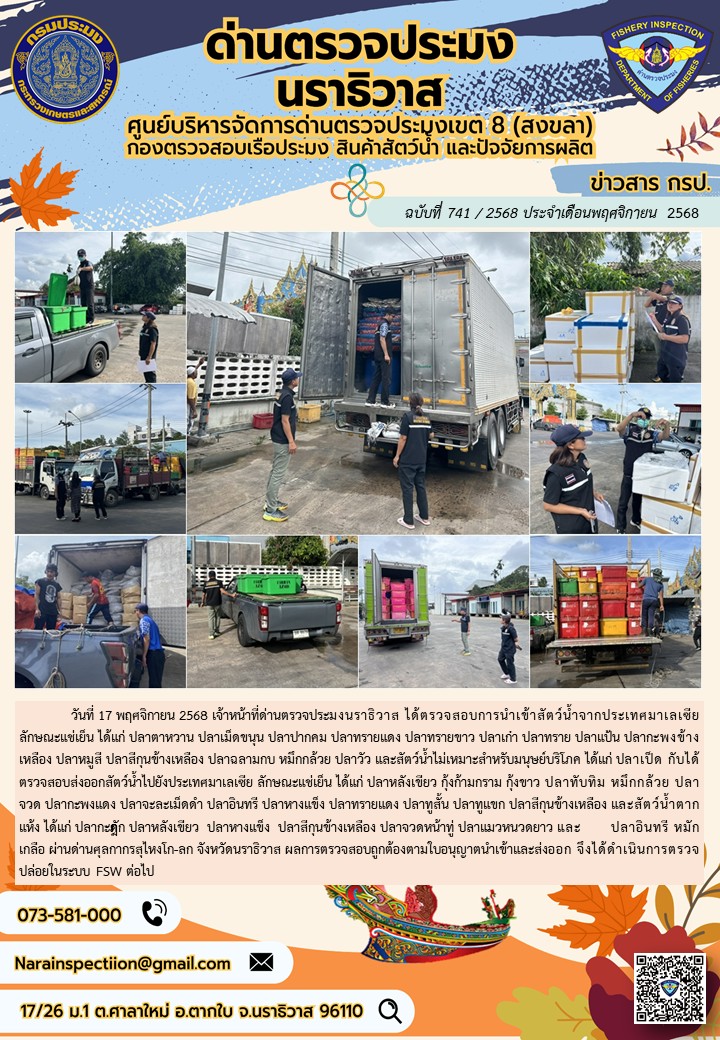 ประชาสัมพันธ์ด่านตรวจประมงนราธิวาส ประจำวันที่ 17 พฤศจิกายน 2568