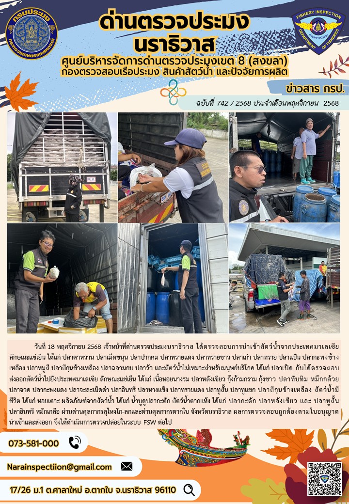 ประชาสัมพันธ์ด่านตรวจประมงนราธิวาส ประจำวันที่ 18 พฤศจิกายน 2568