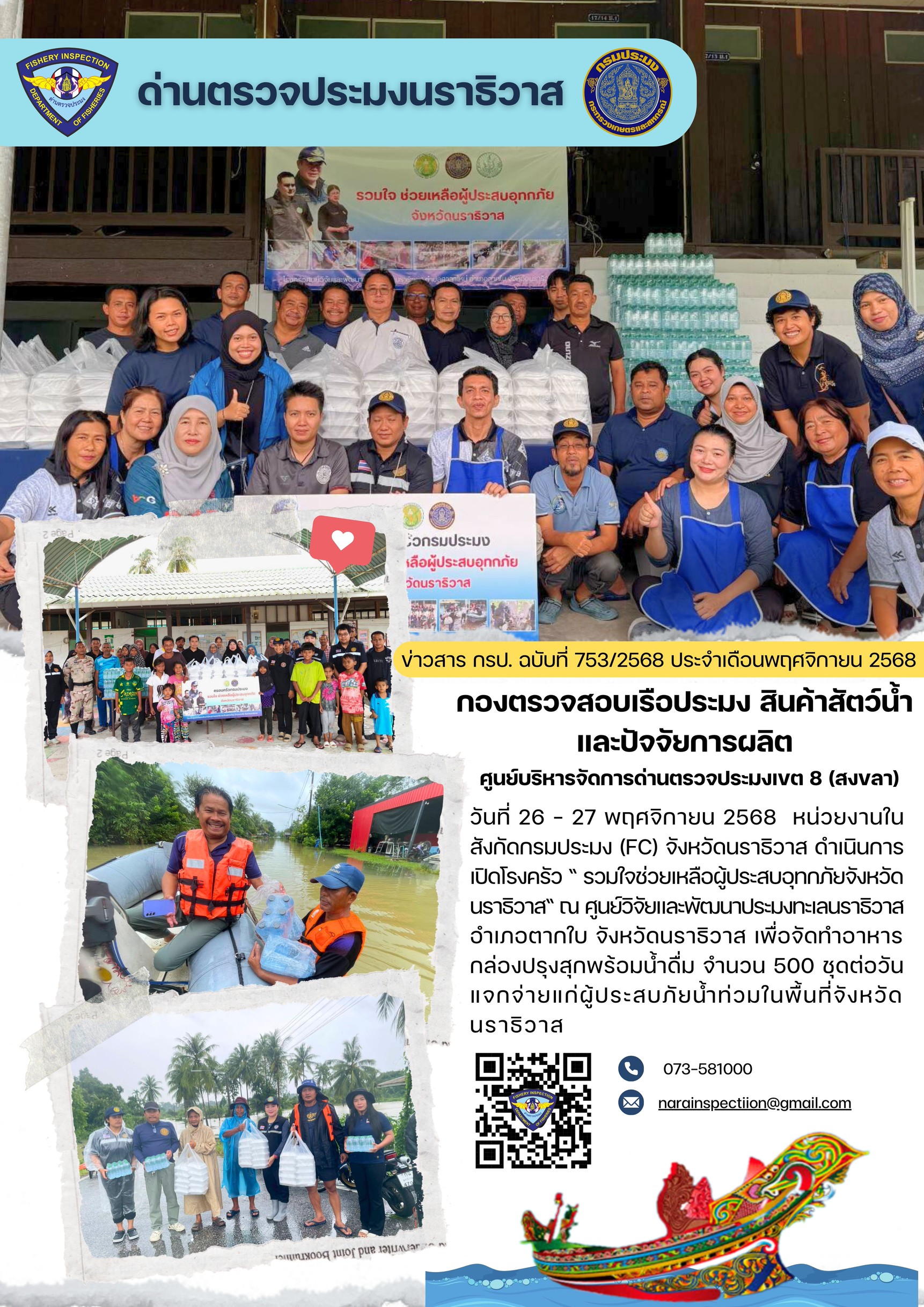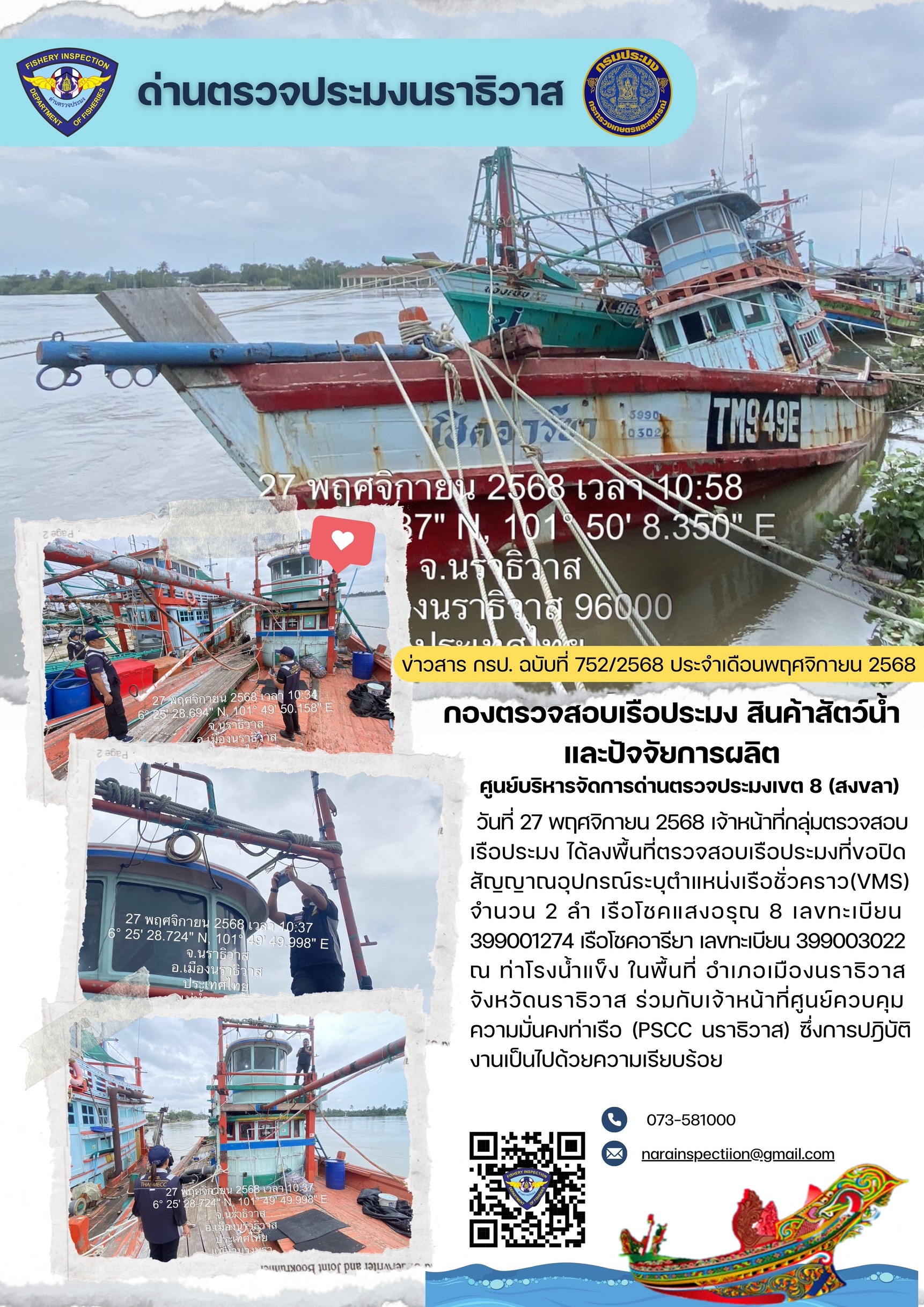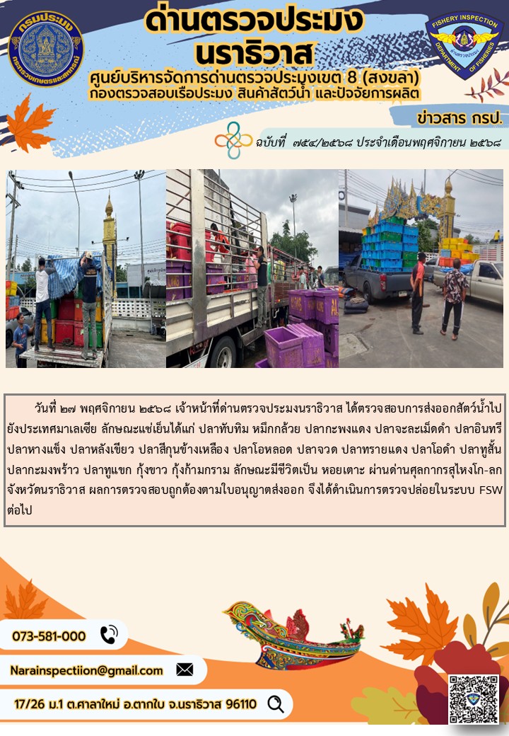 ประชาสัมพันธ์ด่านตรวจประมงนราธิวาส ประจำวันที่ 27 พฤศจิกายน 2568