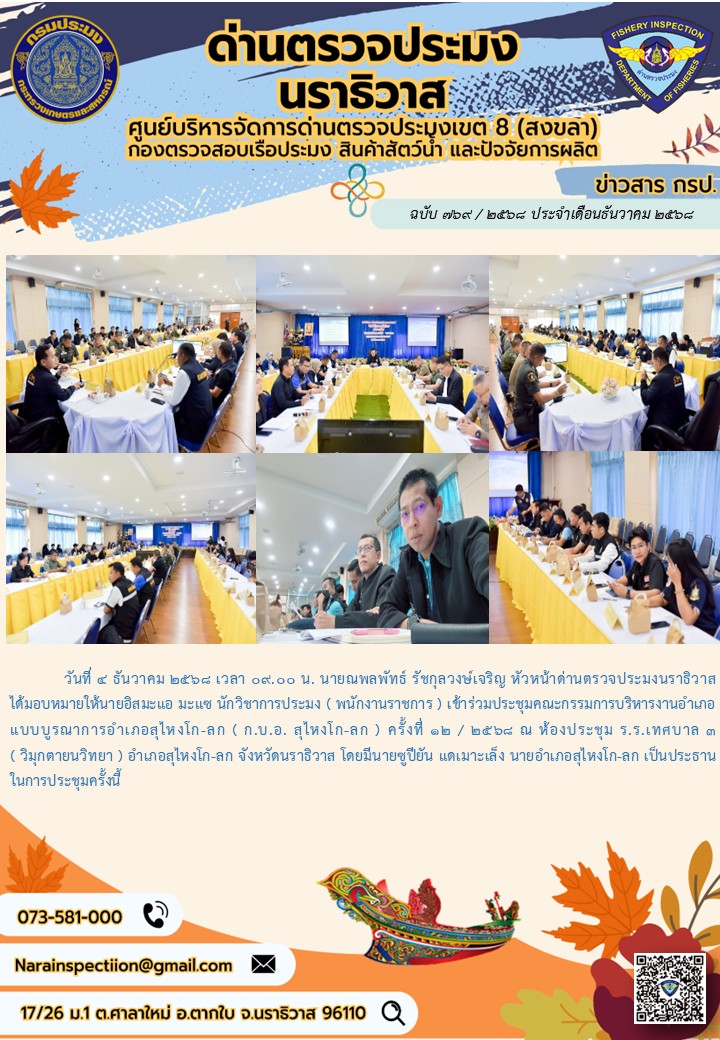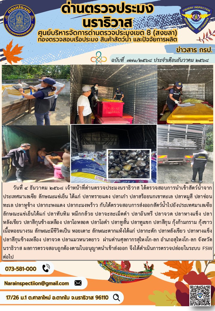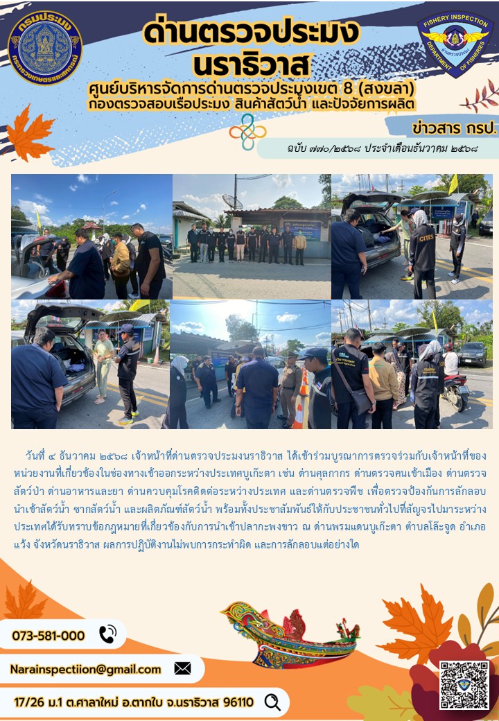 ประชาสัมพันธ์ด่านตรวจประมงนราธิวาส ประจำวันที่ 4 ธันวาคม 2568