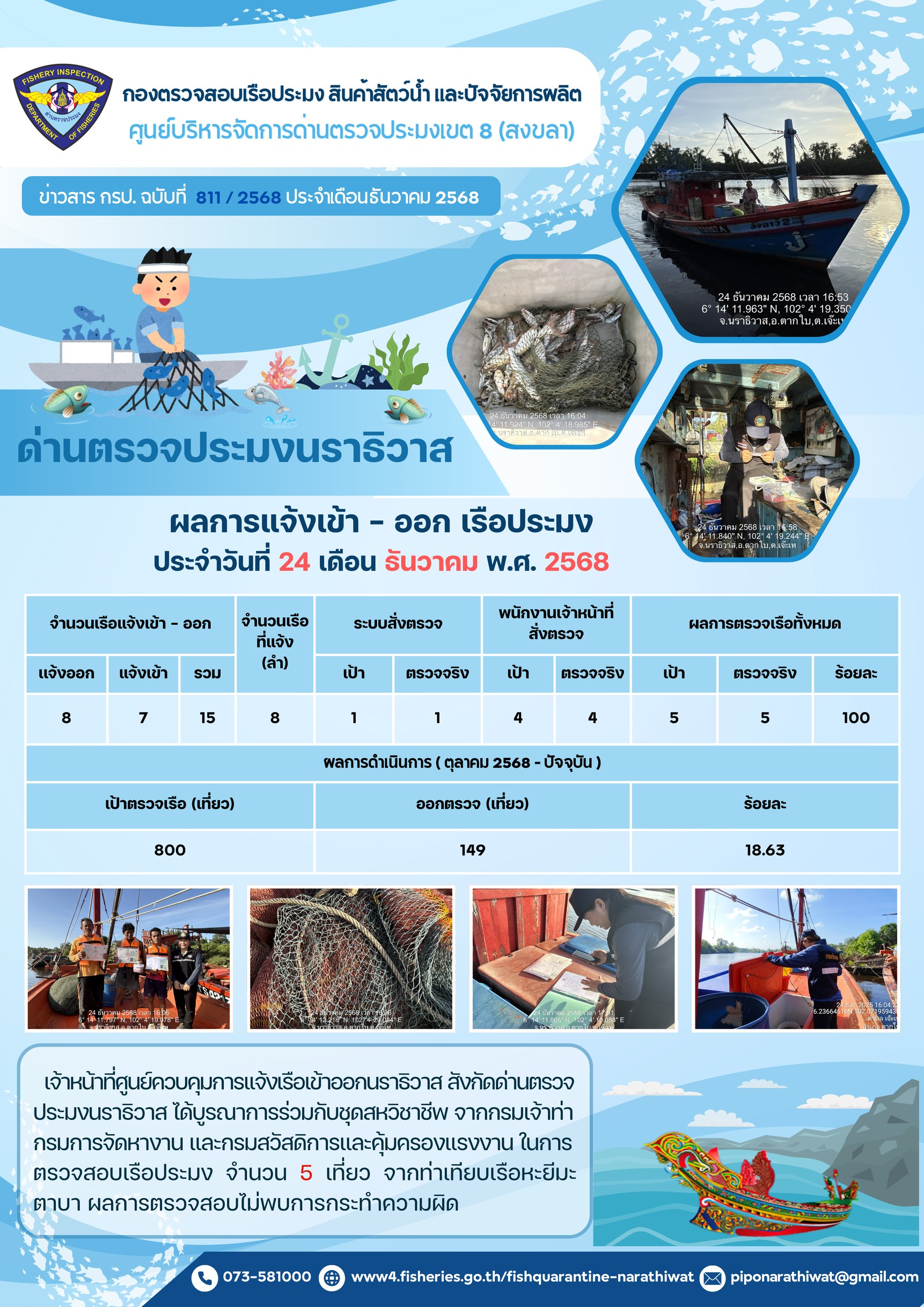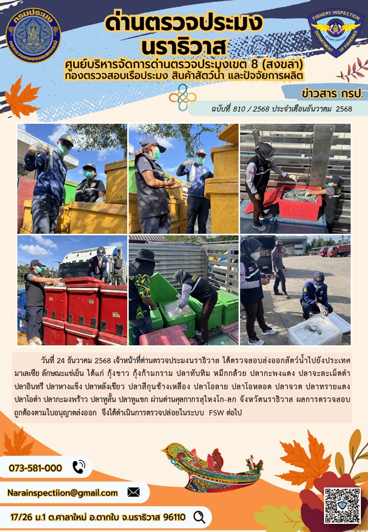 ประชาสัมพันธ์ด่านตรวจประมงนราธิวาส ประจำวันที่ 24 ธันวาคม 2568