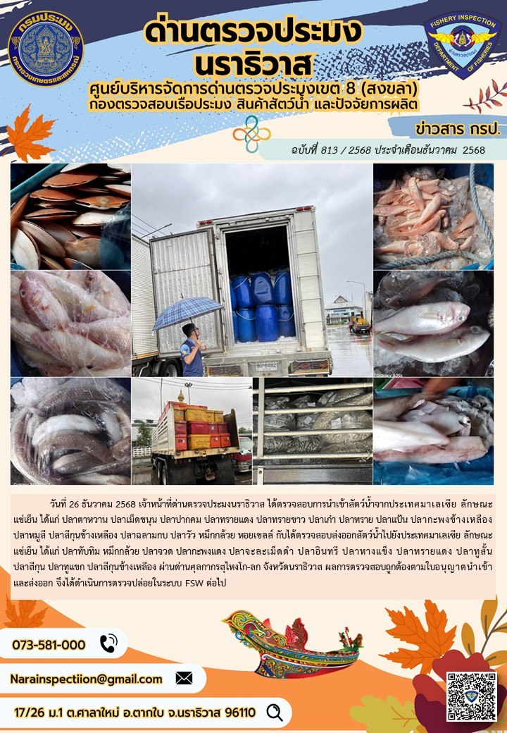 ประชาสัมพันธ์ด่านตรวจประมงนราธิวาส ประจำวันที่ 26 ธันวาคม 2568