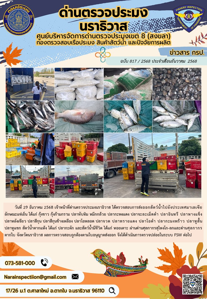 ประชาสัมพันธ์ด่านตรวจประมงนราธิวาส ประจำวันที่ 29 ธันวาคม 2568