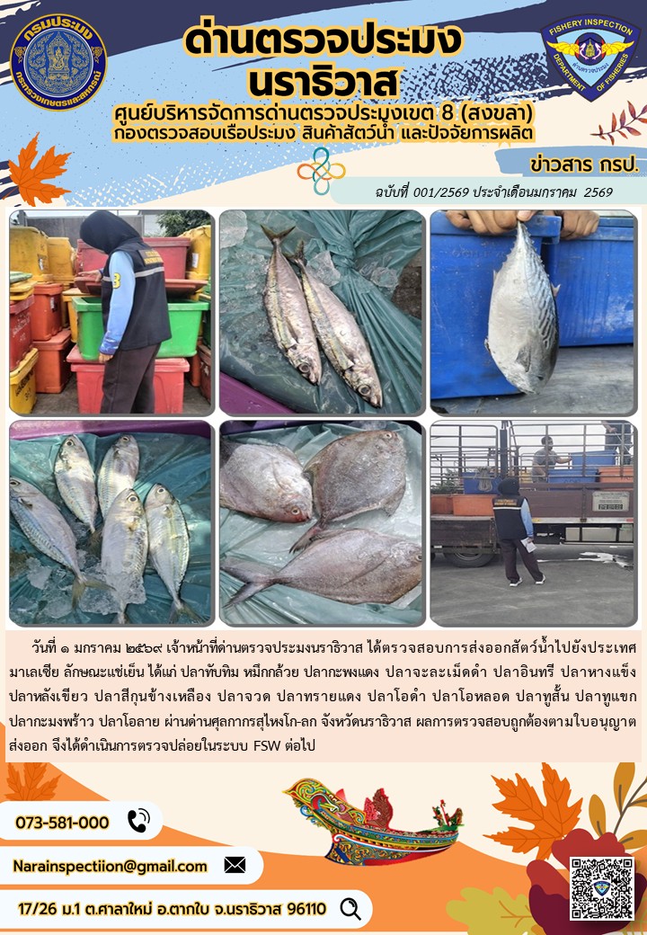 ประชาสัมพันธ์ด่านตรวจประมงนราธิวาส ประจำวันที่ 1 มกราคม 2569