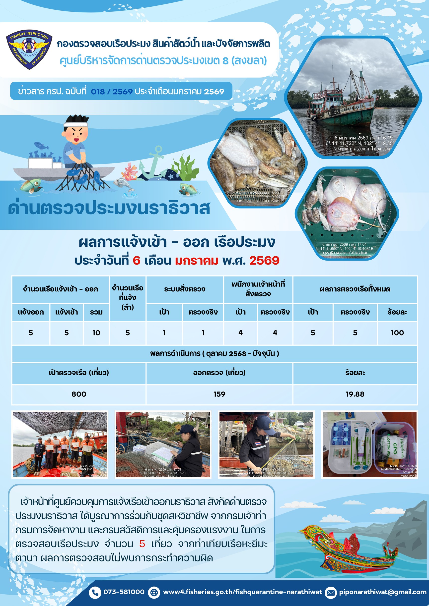 ประชาสัมพันธ์ด่านตรวจประมงนราธิวาส ประจำวันที่ 6 มกราคม 2569