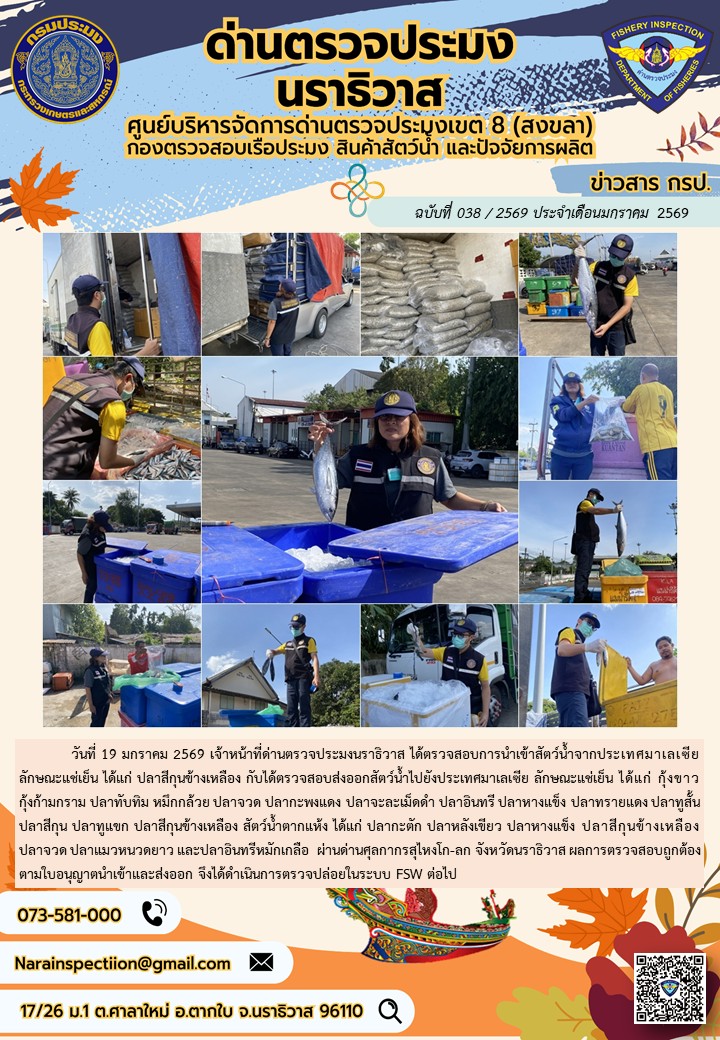 ประชาสัมพันธ์ด่านตรวจประมงนราธิวาส ประจำวันที่ 19 มกราคม 2569