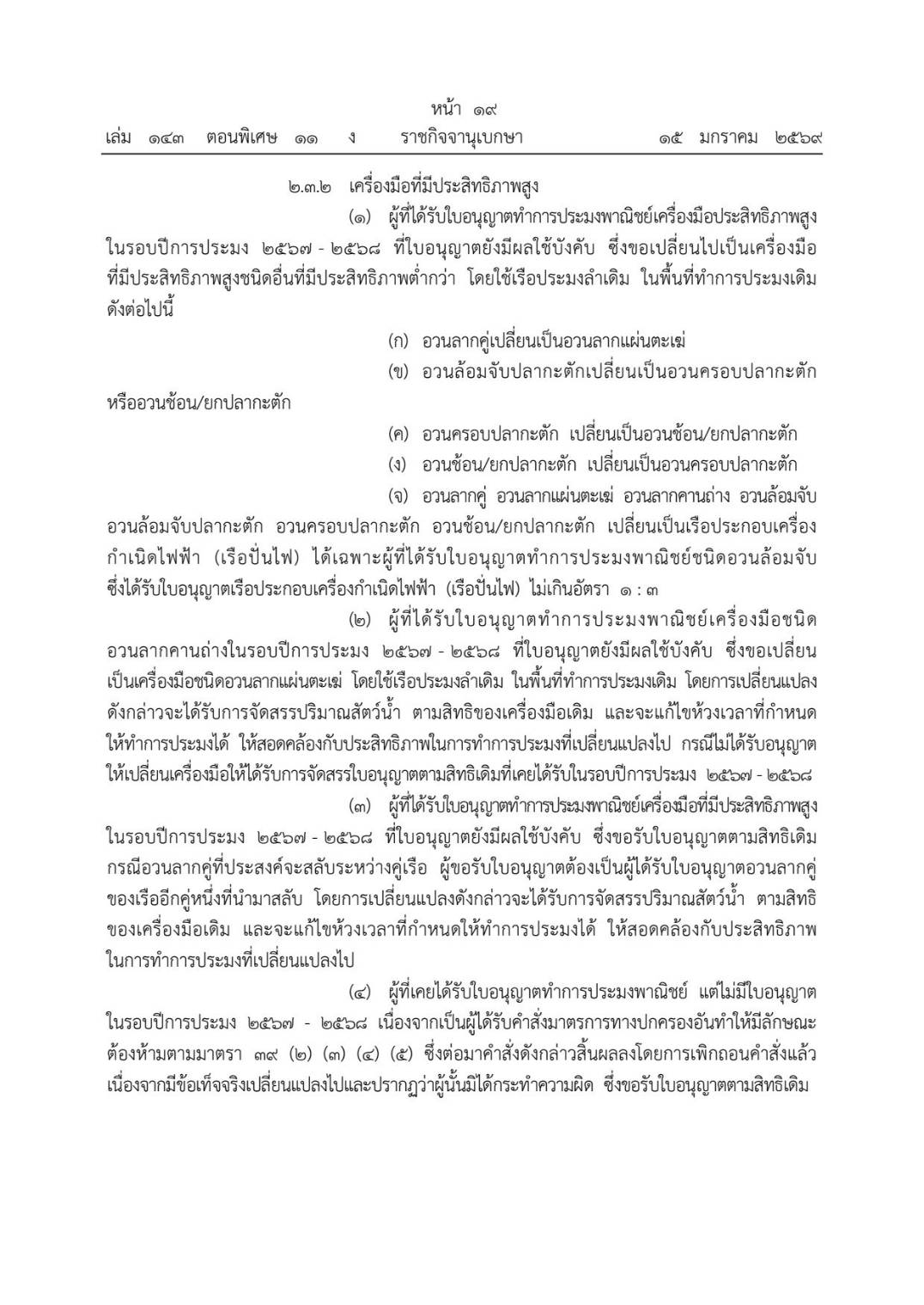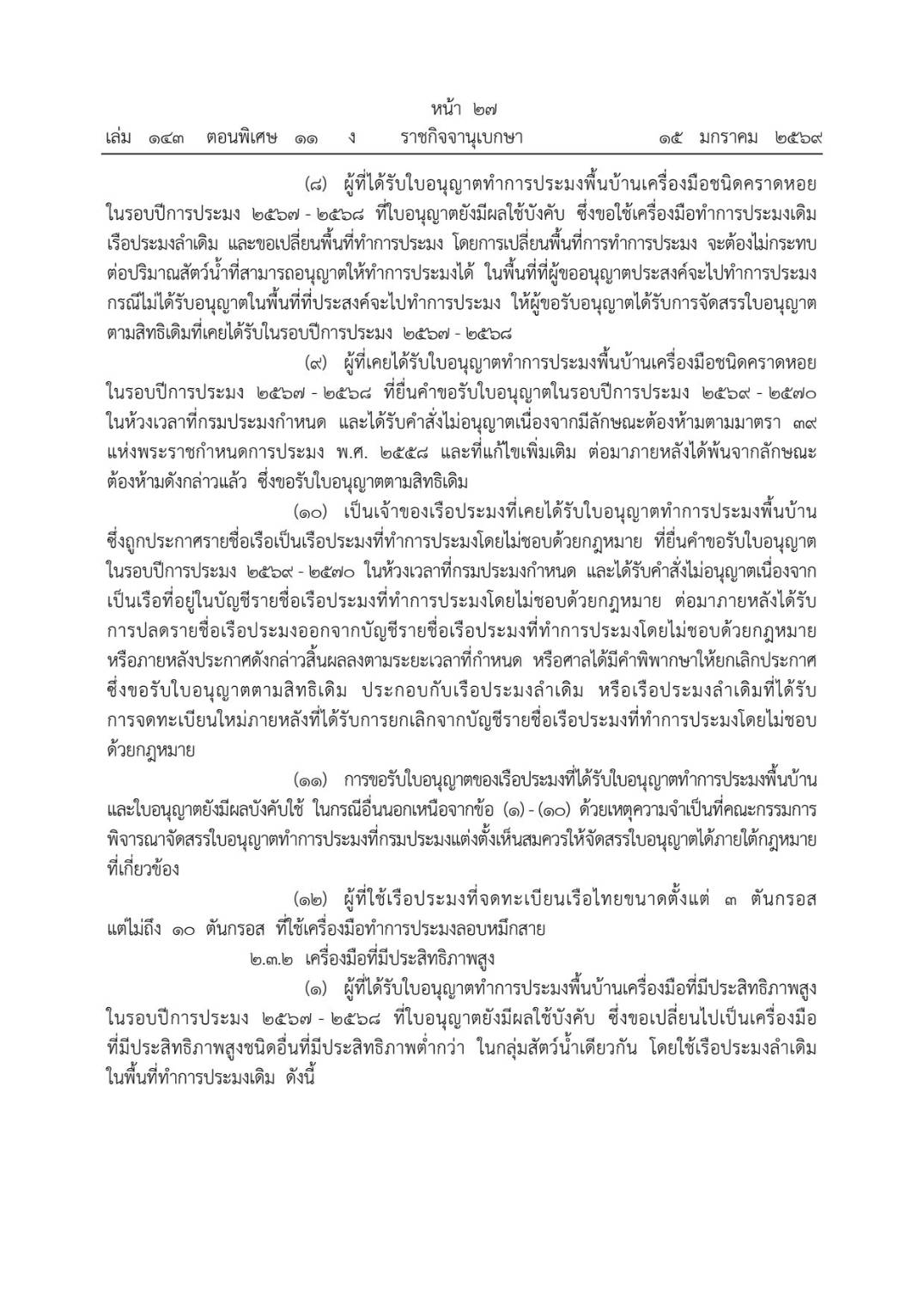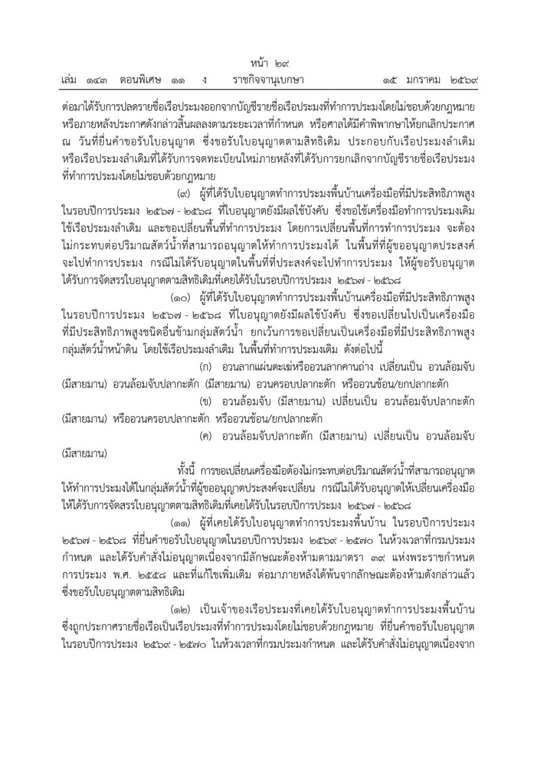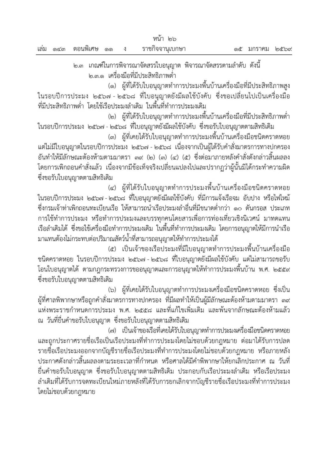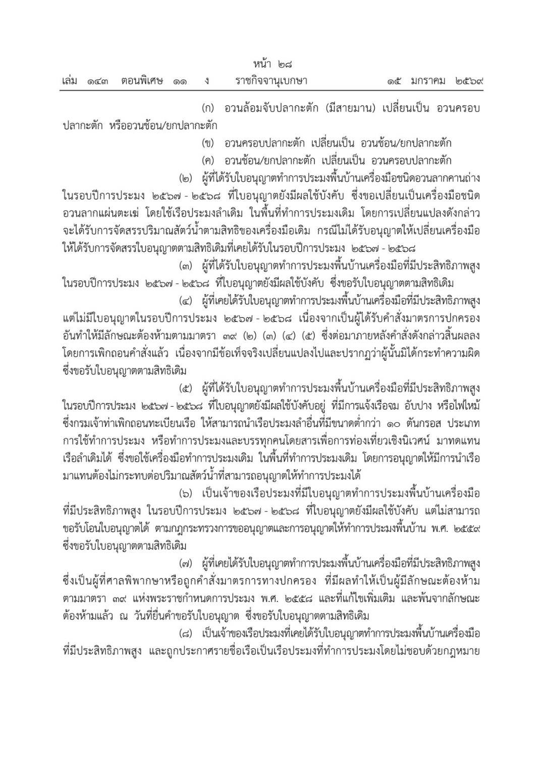 3. ประกาศกรมประมง เรื่อง กำหนดขนาดหรือลักษณะของเรือประมงพื้นบ้าน และเครื่องมือ ทำการประมงที่ต้องขอรับใบอนุญาตทำการประมงพื้นบ้าน พ.ศ. 2569