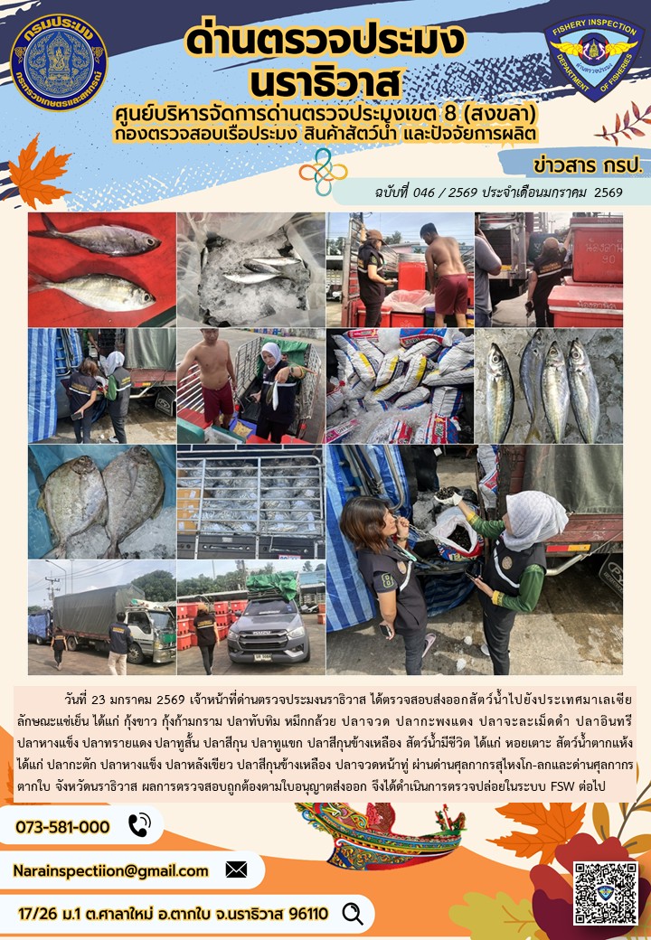 ประชาสัมพันธ์ด่านตรวจประมงนราธิวาส ประจำวันที่ 23 มกราคม 2569