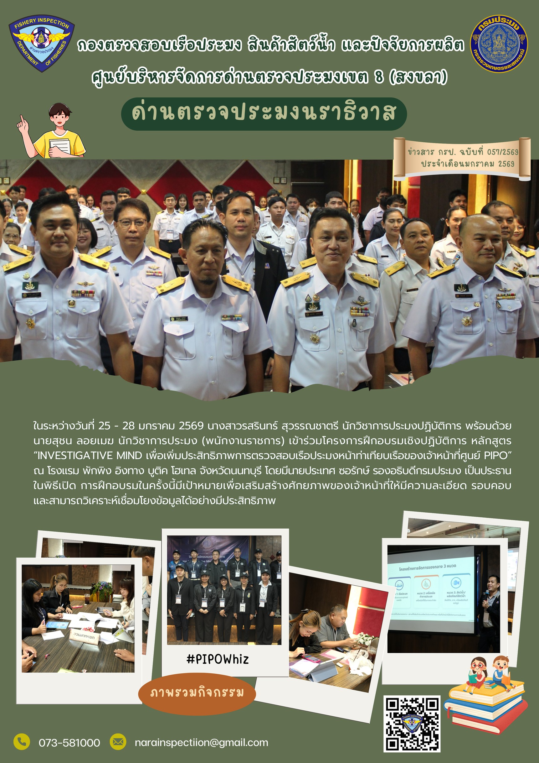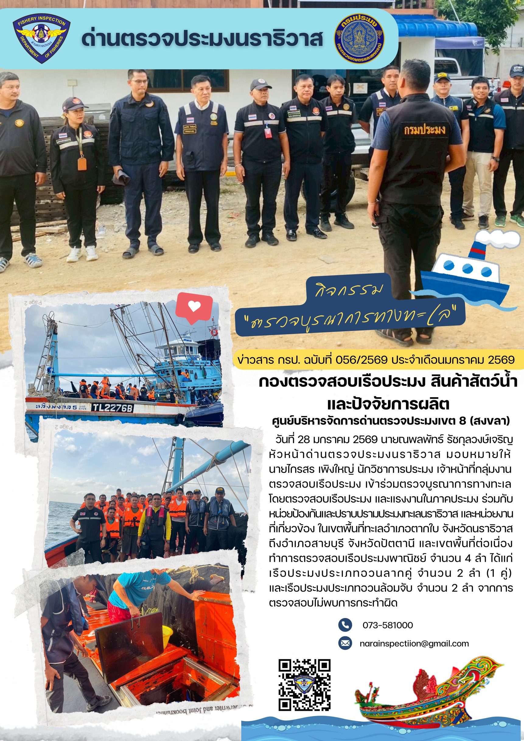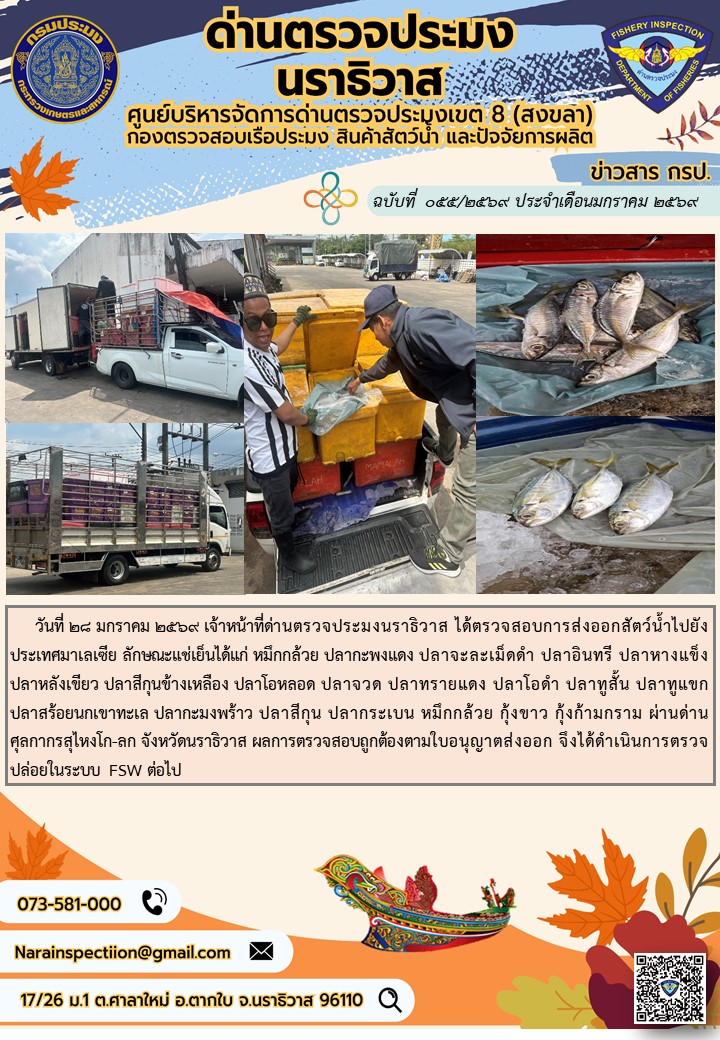 ประชาสัมพันธ์ด่านตรวจประมงนราธิวาส ประจำวันที่ 28 มกราคม 2569