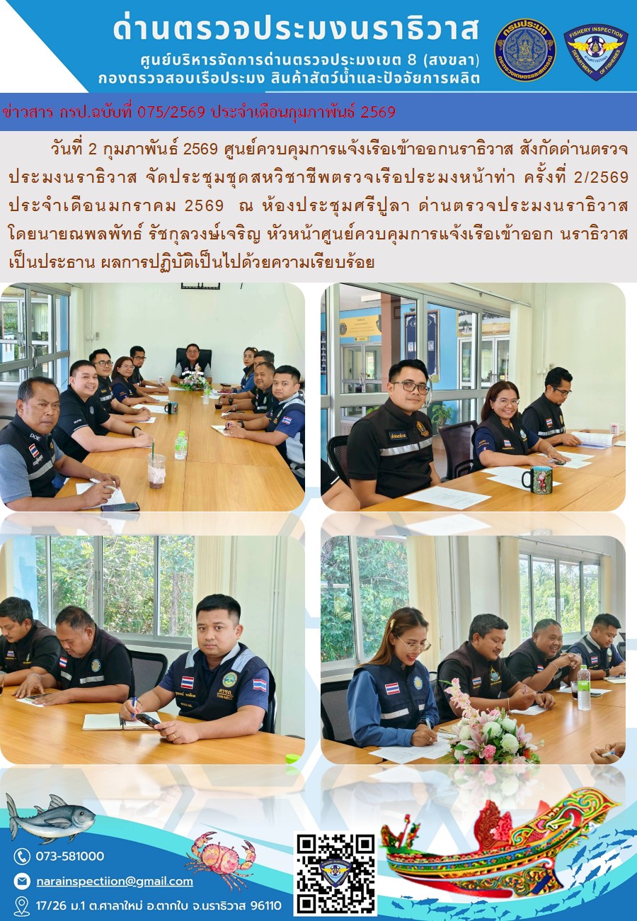 ประชาสัมพันธ์ด่านตรวจประมงนราธิวาส ประจำวันที่ 2 กุมภาพันธ์ 2569