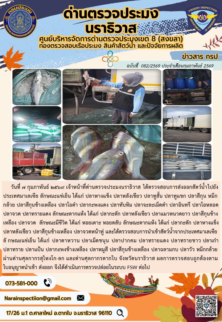 ประชาสัมพันธ์ด่านตรวจประมงนราธิวาส ประจำวันที่ 7 กุมภาพันธ์ 2569