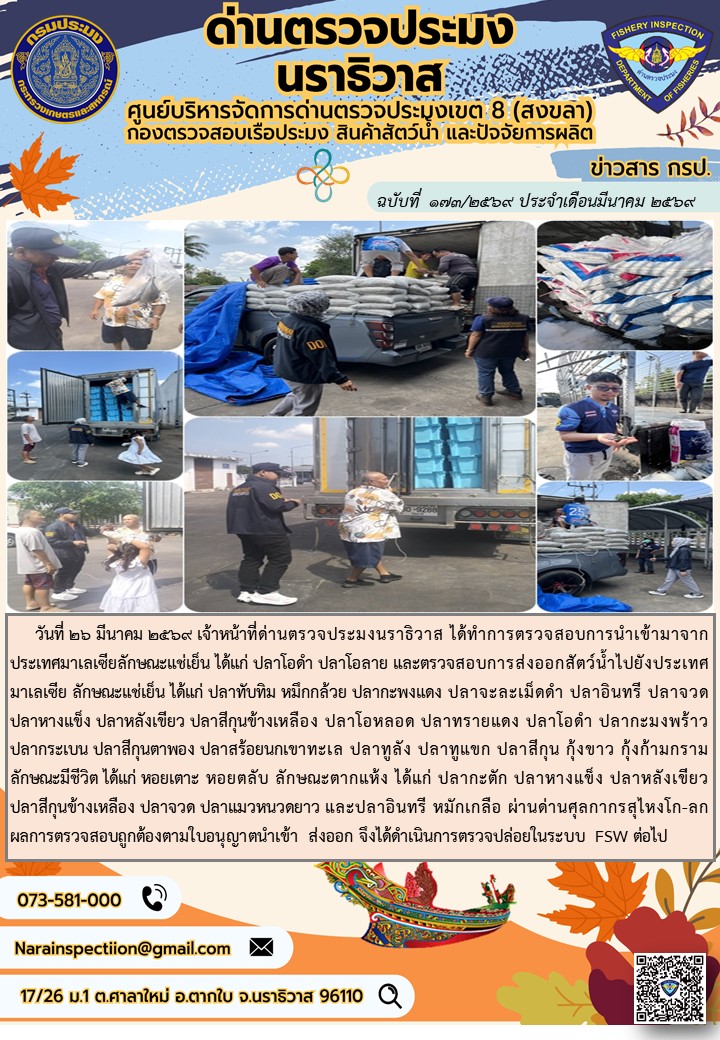ประชาสัมพันธ์ด่านตรวจประมงนราธิวาส ประจำวันที่ 26 มีนาคม 2569