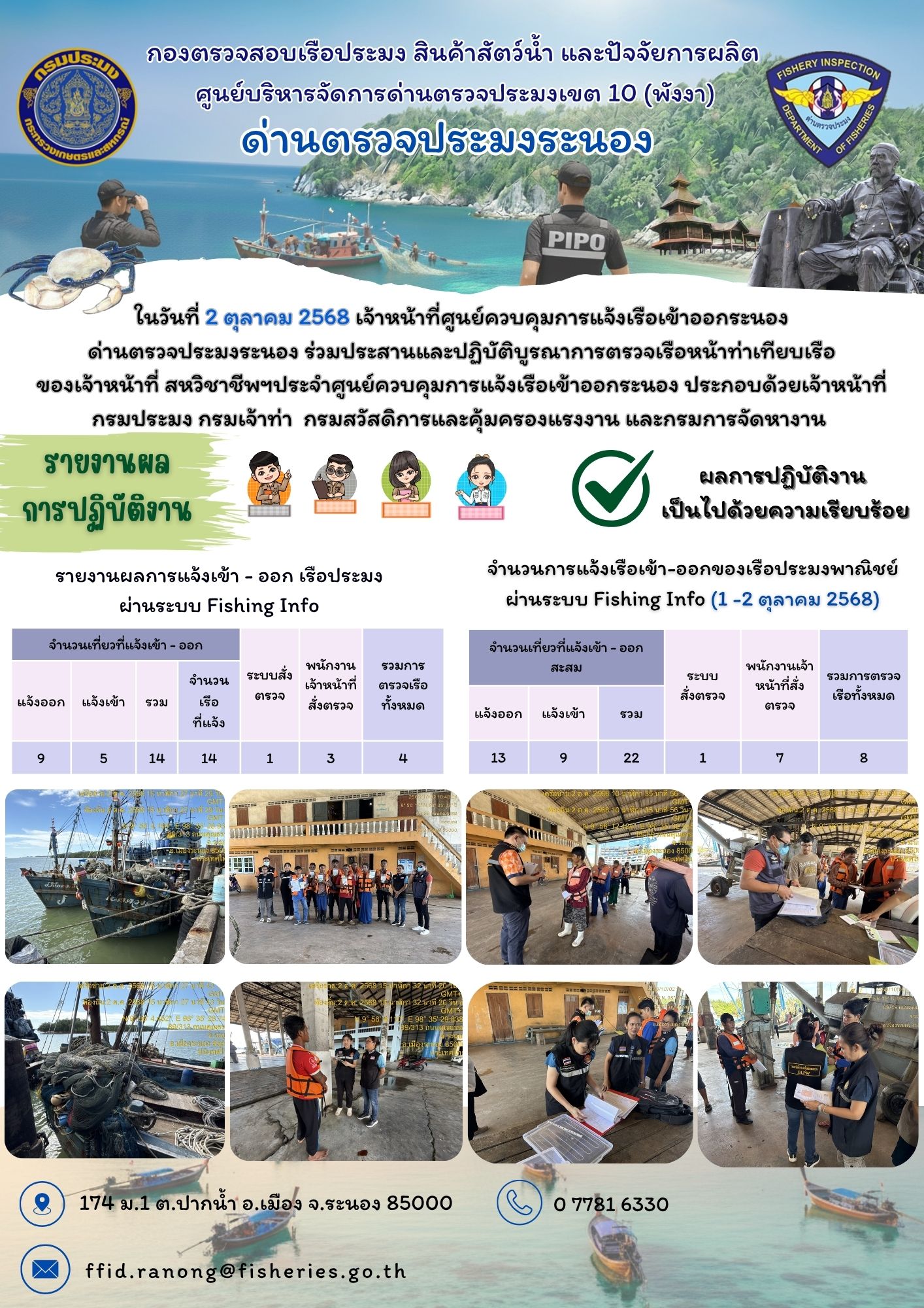 ในวันที่ 2 ตุลาคม 2568 เจ้าหน้าที่ศูนย์ควบคุมการแจ้งเรือเข้าออกระนอง