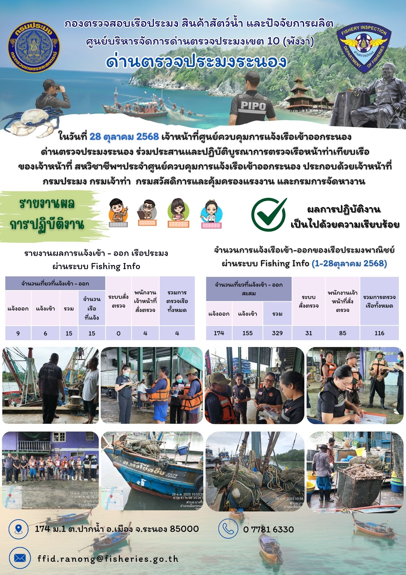 ในวันที่ 28 ตุลาคม 2568 เจ้าหน้าที่ศูนย์ควบคุมการแจ้งเรือเข้าออกระนอง