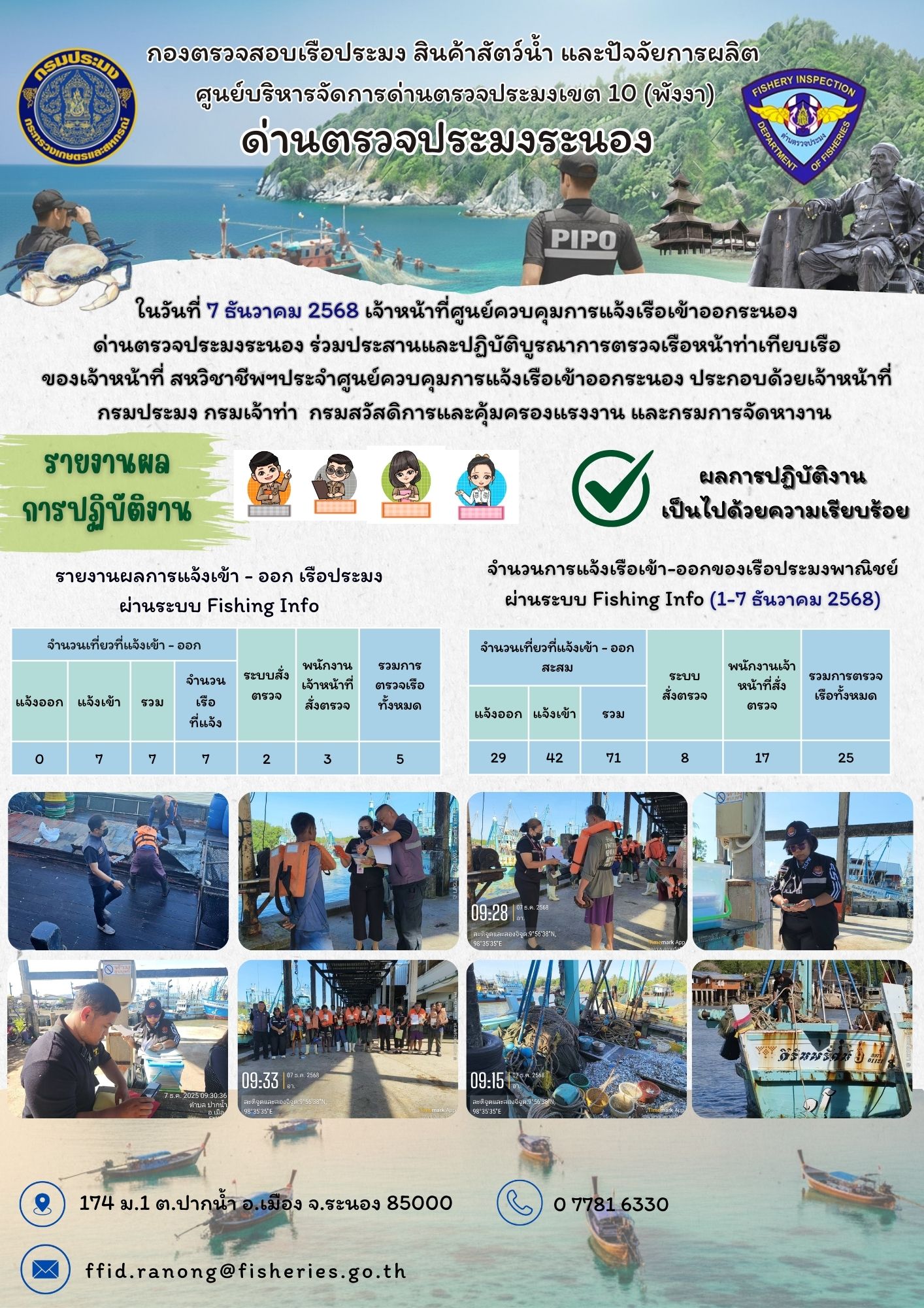 ในวันที่ 7 ธันวาคม 2568 เจ้าหน้าที่ศูนย์ควบคุมการแจ้งเรือเข้าออกระนอง