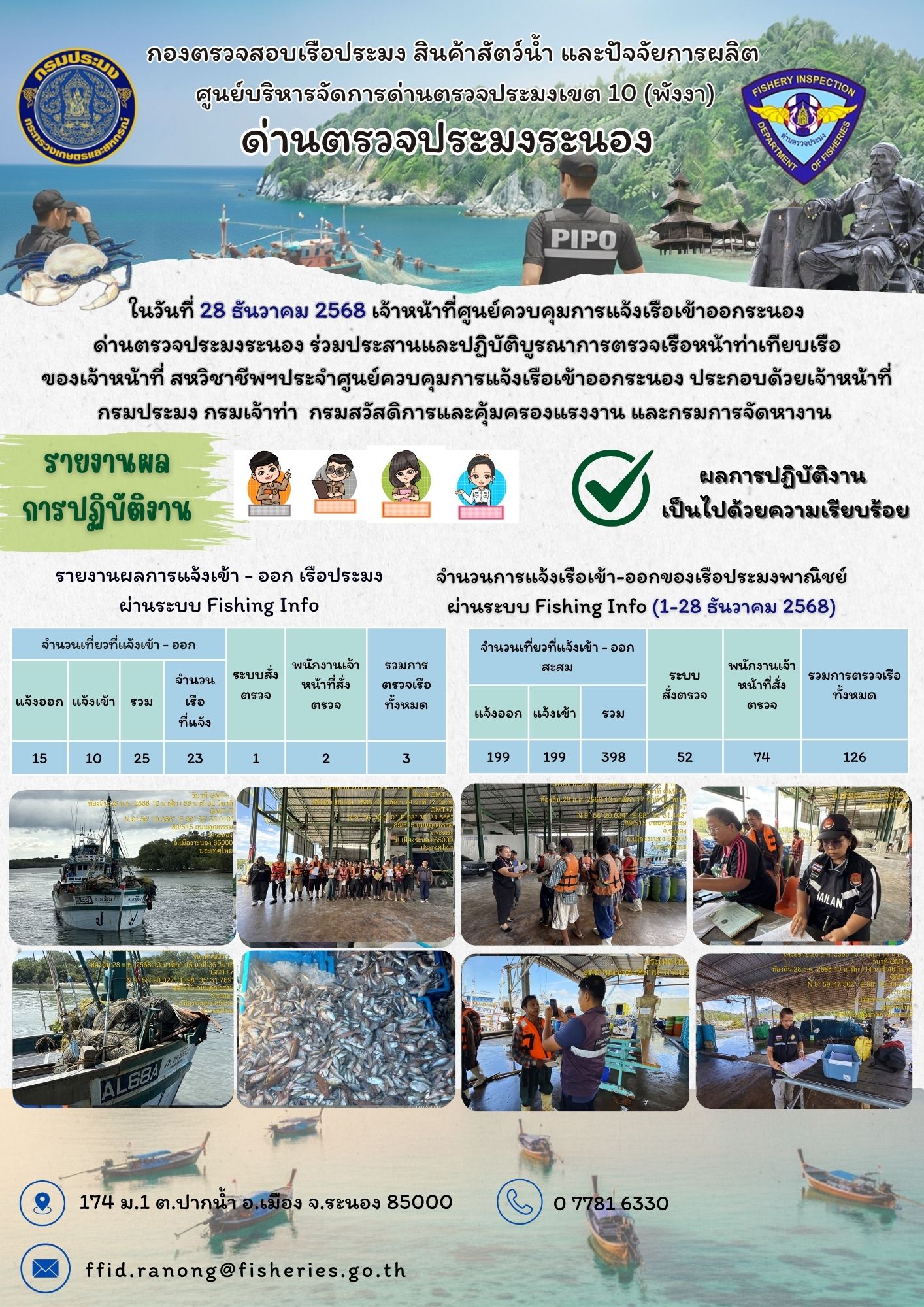 ในวันที่ 28 ธันวาคม 2568 เจ้าหน้าที่ศูนย์ควบคุมการแจ้งเรือเข้าออกระนอง