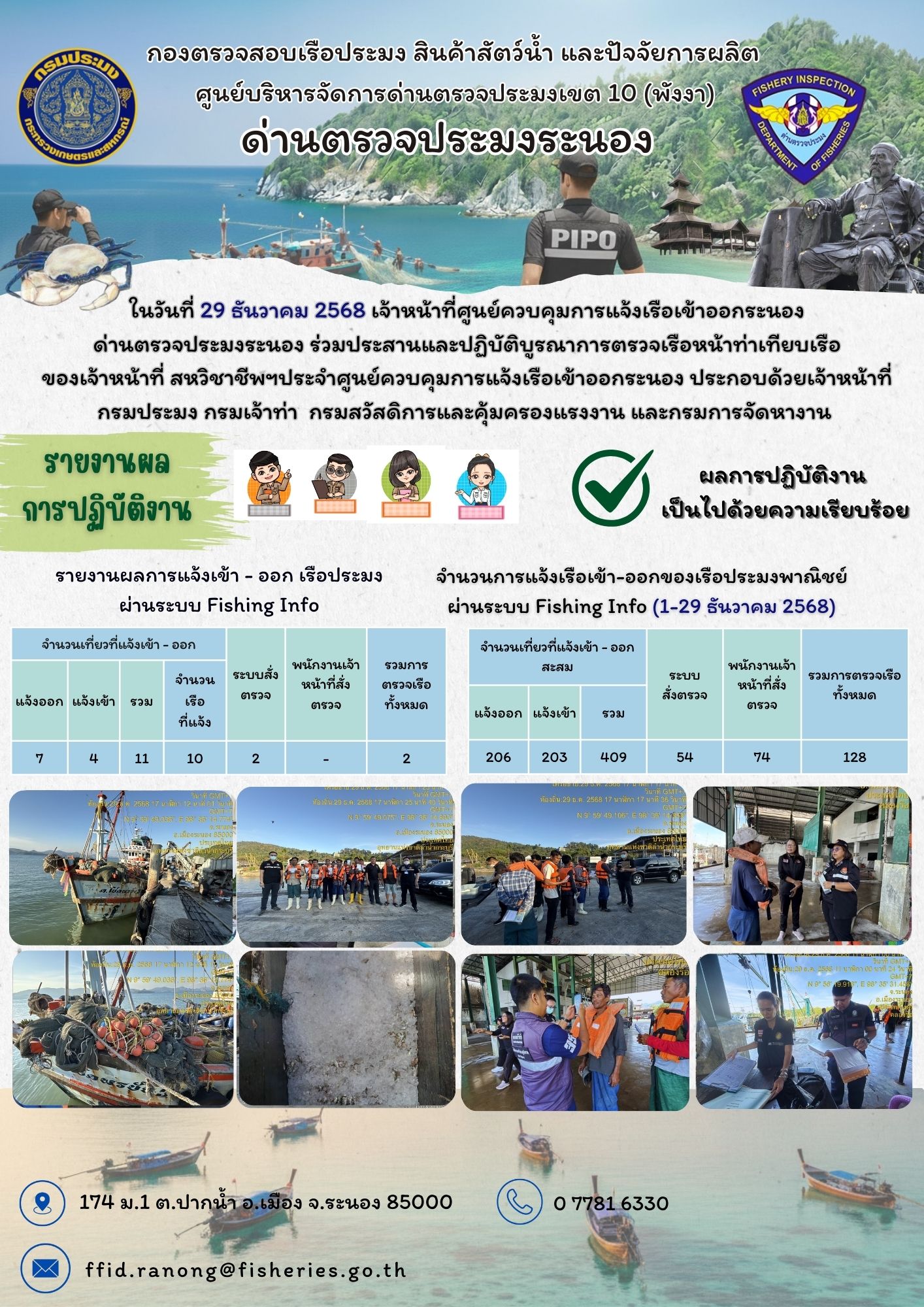 ในวันที่ 29 ธันวาคม 2568 เจ้าหน้าที่ศูนย์ควบคุมการแจ้งเรือเข้าออกระนอง