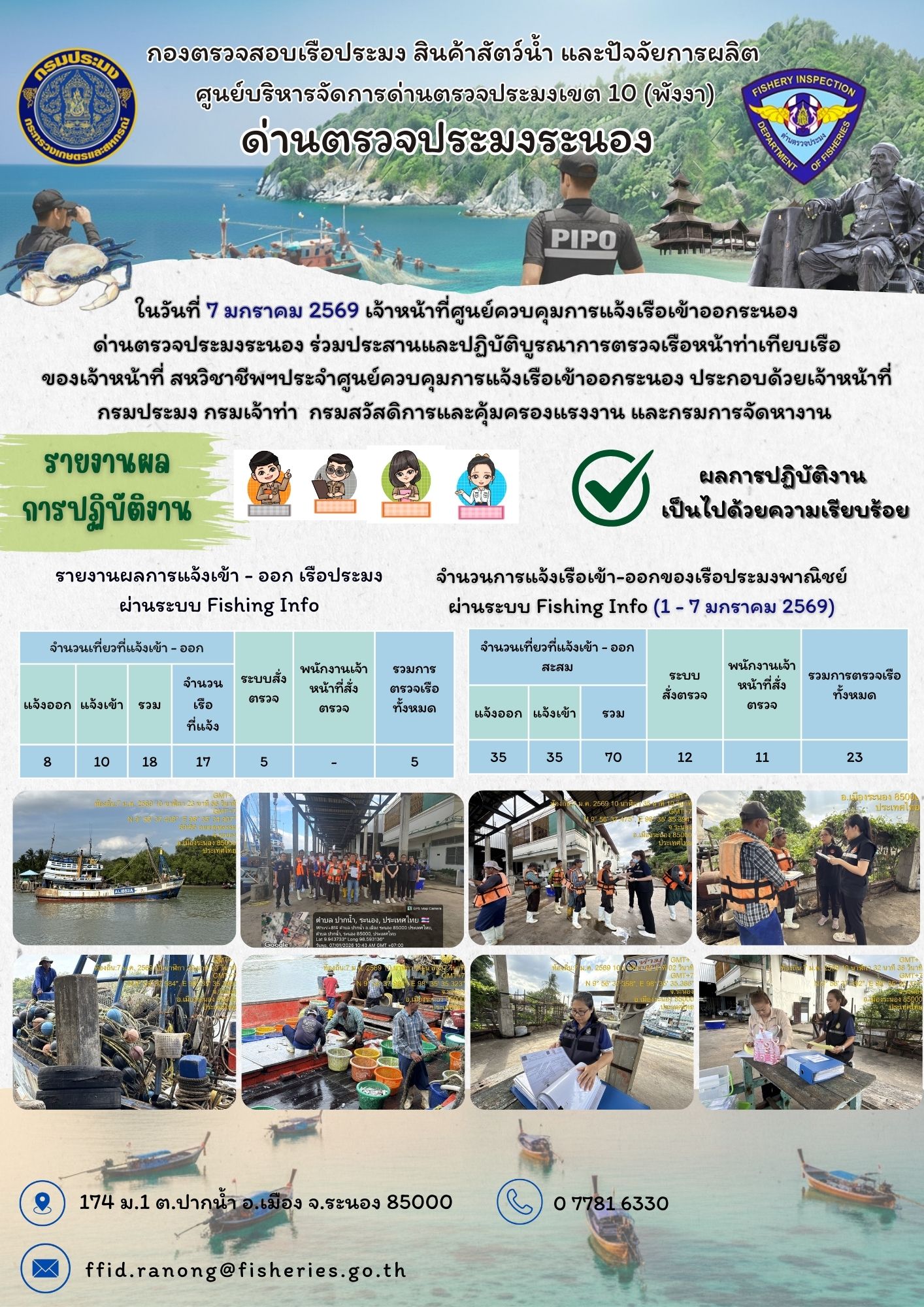 ในวันที่ 7 มกราคม 2569 เจ้าหน้าที่ศูนย์ควบคุมการแจ้งเรือเข้าออกระนอง