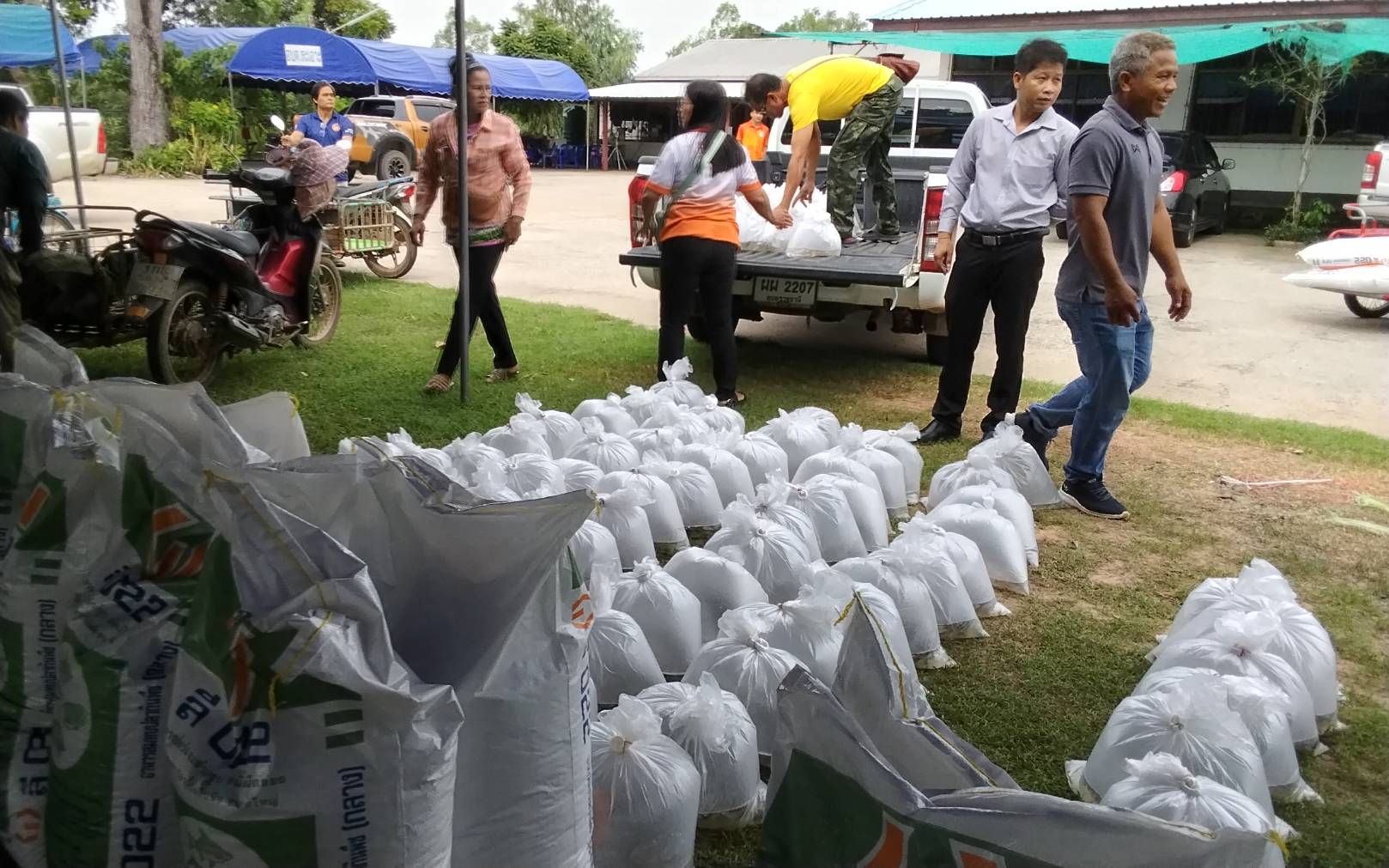 มอบปัจจัยการผลิตแก่เกษตรกร โครงการพัฒนาอาชีพเพาะเลี้ยงปลาตะเพียนขาวในบ่อดินอำเภอน้ำเกลี้ยง