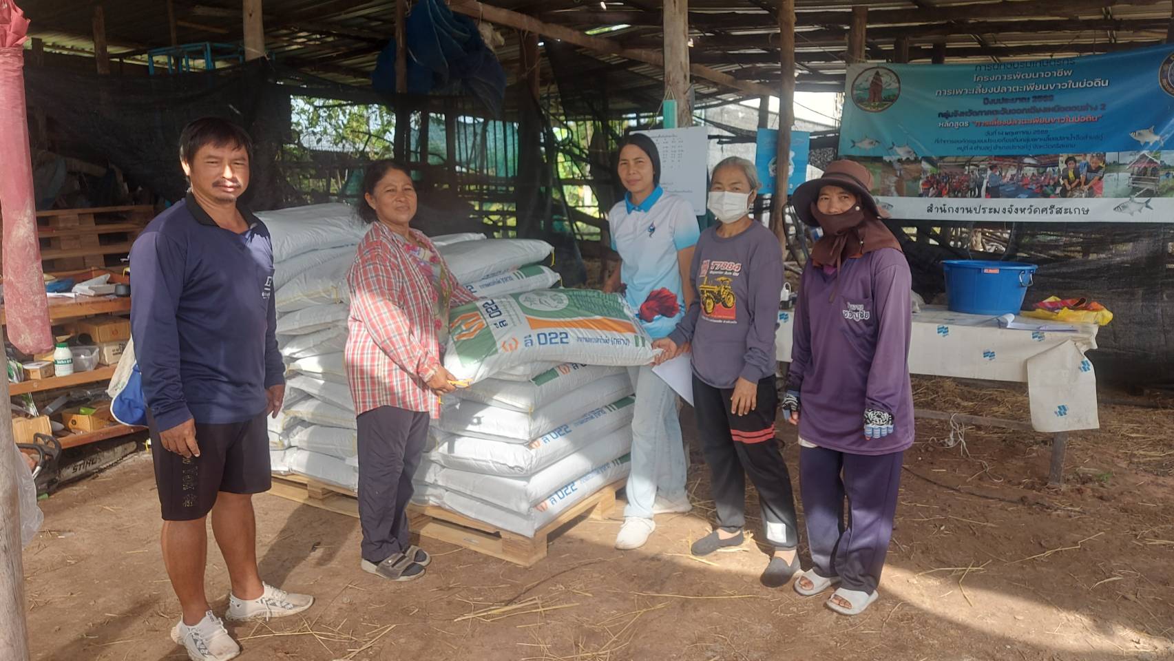 มอบปัจจัยการผลิตแก่เกษตรกร โครงการพัฒนาอาชีพเพาะเลี้ยงปลาตะเพียนขาวในบ่อดินอำเภอปรางค์กู่