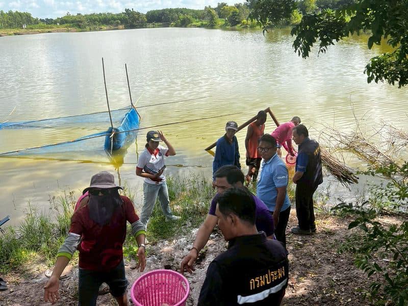 สำนักงานประมงจังหวัดศรีสะเกษ โดยนายอิสระ สุวิทยาภรณ์ ประมงจังหวัดศรีสะเกษ พร้อมด้วยนายประจักษ์ แสนภักดี หัวหน้ากลุ่มบริหารจัดการด้านการประมง นางเสาวณี แสนโคก ประมงอำเภอเมืองศรีสะเกษ นางสาววาสนา ยุภา ประมงอำเภอปรางค์กู่ และเจ้าหน้าที่สำนักงานฯ ร่วมกับคณะกรรมการตรวจรับฯ ศูนย์วิจัยและพัฒนาการเพาะเลี้ยงสัตว์น้ำจืดศรีสะเกษ ดำเนินการตรวจรับกุ้งก้ามกราม ตามโครงการบริหารจัดการทรัพยากรประมง กิจกรรมบริหารจัดการทรัพยากรประมงน้ำจืด การเพิ่มผลผลิตสัตว์น้ำในแหล่งน้ำชุมชน เพื่อเพิ่มรายได้และลดค่าครองชีพของประชาชน ประจำปีงบประมาณ 2568 จำนวน 3 แหล่งน้ำ