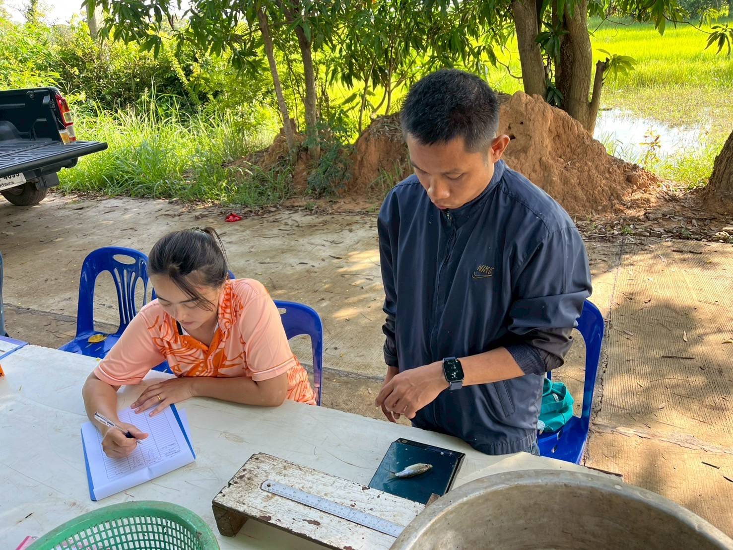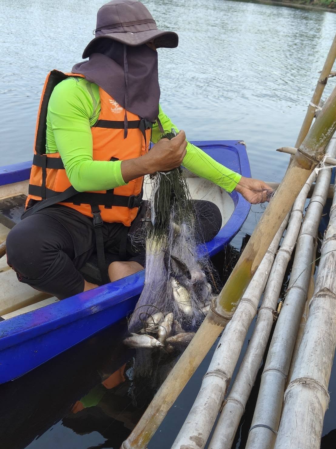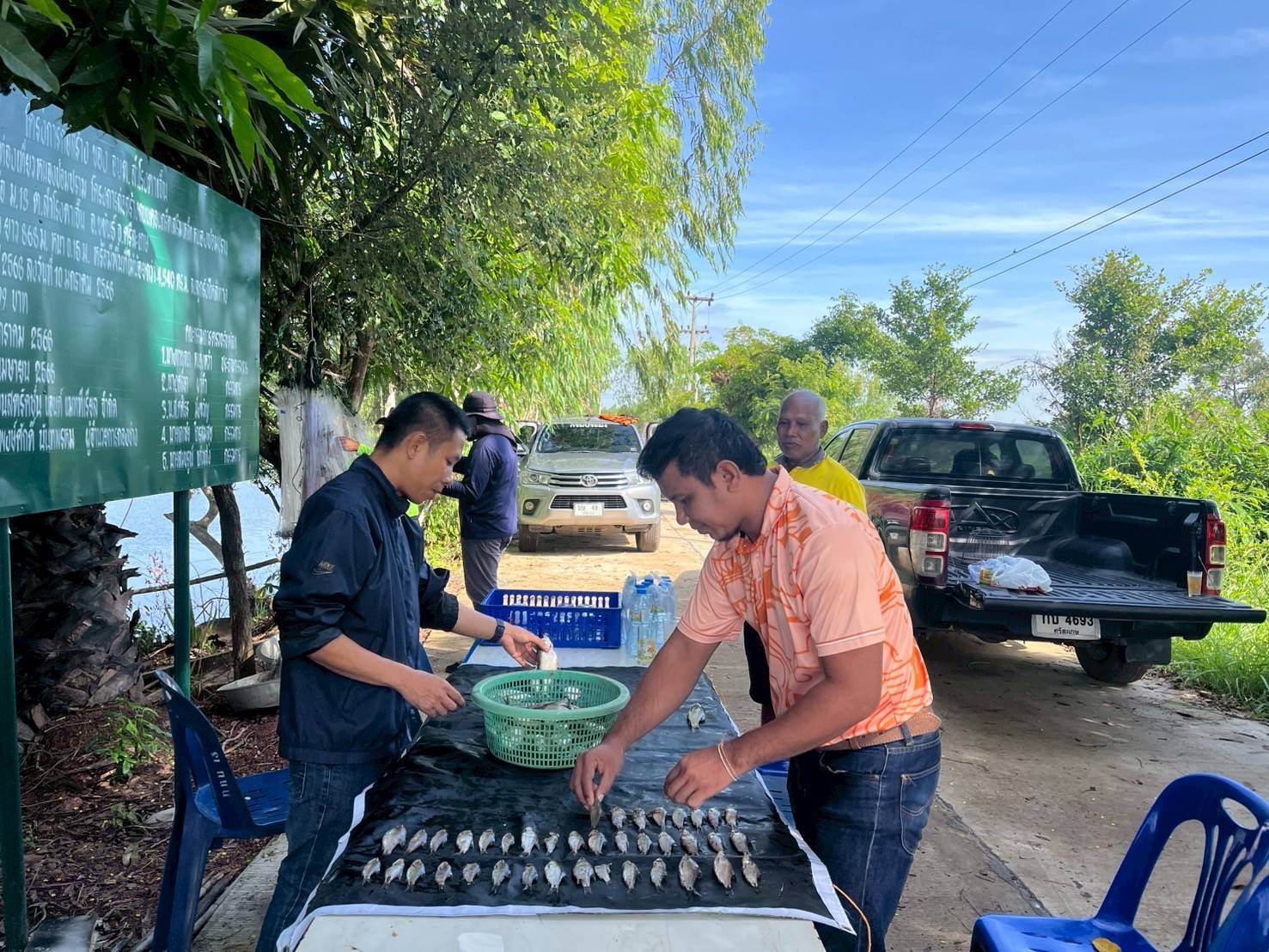 ลงพื้นที่กับคณะกรรมการแหล่งน้ำหนองป้อมปราบประเมินปริมาณสัตว์น้ำต่อหน่วยลงแรงประมง (CPUE) ด้วยเครื่องมือประมงชนิดข่าย