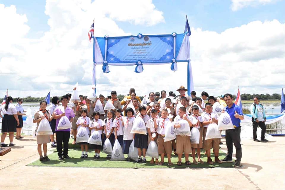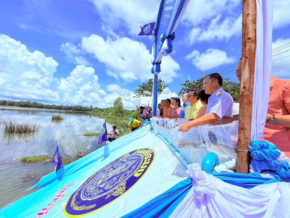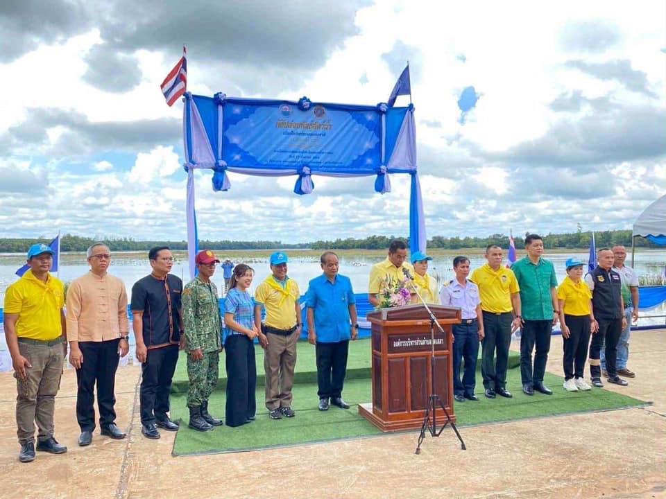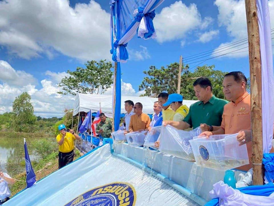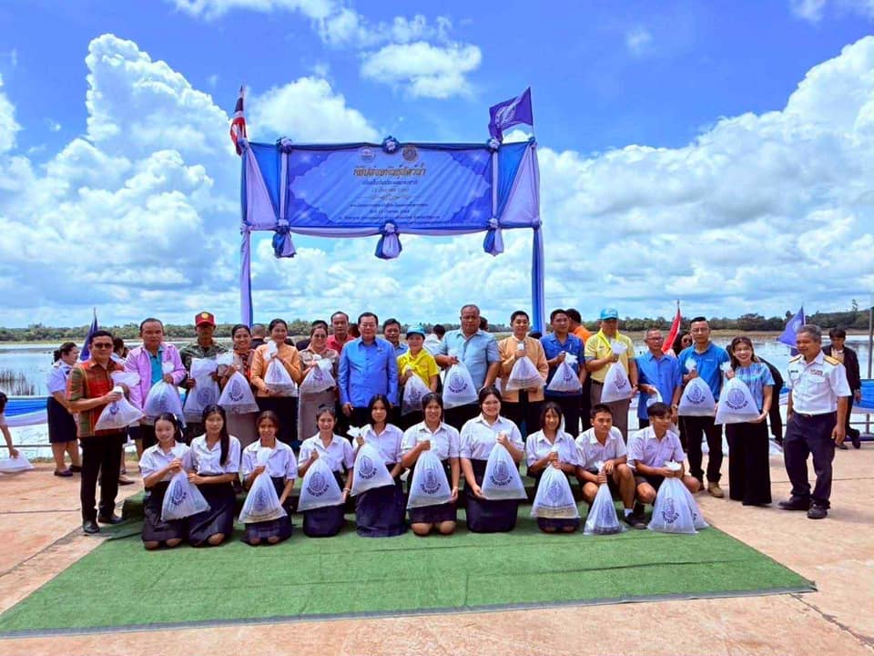 โดยได้รับการสนับสนุนพันธุ์ปลาจากศูนย์วิจัยและพัฒนาการเพาะเลี้ยงสัตว์น้ำจืดศรีสะเกษ จำนวน 200,000 ตัว ซึ่งประกอบด้วย