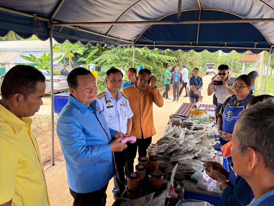จากนั้น ได้มอบประกาศนียบัตรแก่ผู้ที่สนับสนุน และกลุ่มเกษตรกรดีเด่น เพื่อยกย่องและเชิดชูเกียรติ และมอบพันธุ์ปลาแก่ผู้นำชุมชน เพื่อปล่อยในแหล่งน้ำสาธารณะของหมู่บ้าน และร่วมปลูกต้นไม้เพื่อเพิ่มพื้นที่สีเขียวและอนุรักษ์ทรัพยากรป่าไม้