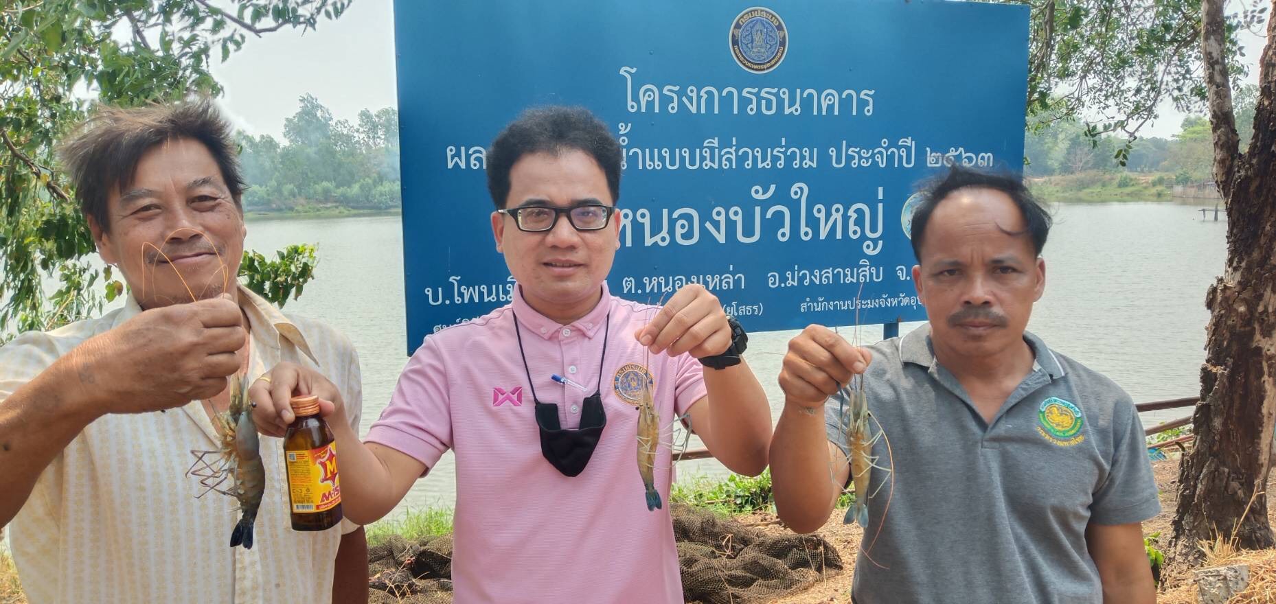 วันที่ 16 มีนาคม 2564 เวลา 09.00 น. นายธงชัย ชาตำเเย ประมงอำเภอม่วงสามสิบ พร้อมด้วยนางสาววิภา กาญจนารักษ์ เจ้าพนักงานประมงปฏิบัติงาน กลุ่มบริหารจัดการด้านการประมง และคณะ ร่วมกับคณะกรรมการโครงการธนาคารผลผลิตสัตว์น้ำแบบมีส่วนร่วมหนองบัวใหญ่  ติดตามและเตรียมความพร้อมการดำเนินงานโครงการธนาคารสินค้าเกษตร กิจกรรมสนับสนุนธนาคารผลผลิตสัตว์น้ำแบบมีส่วนร่วม(แหล่งเก่า) ณ หนองบัวใหญ่ ตำบลหนองเหล่า อำเภอม่วงสามสิบ จังหวัดอุบลราชธานี  เพื่อเปิดขายบัตรจับสัตว์น้ำราคาบัตรละ 250 บาทในวันเสาร์ที่ 20 มีนาคม 2564 เวลา 09.30 น. เป็นต้นไป