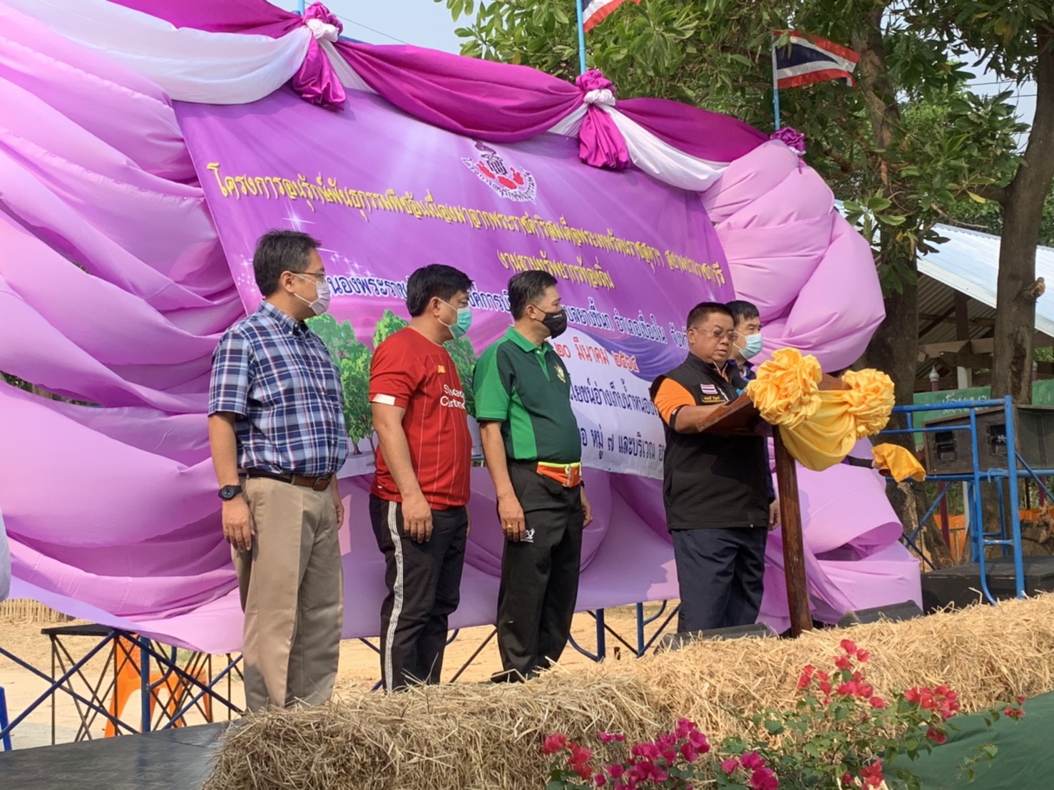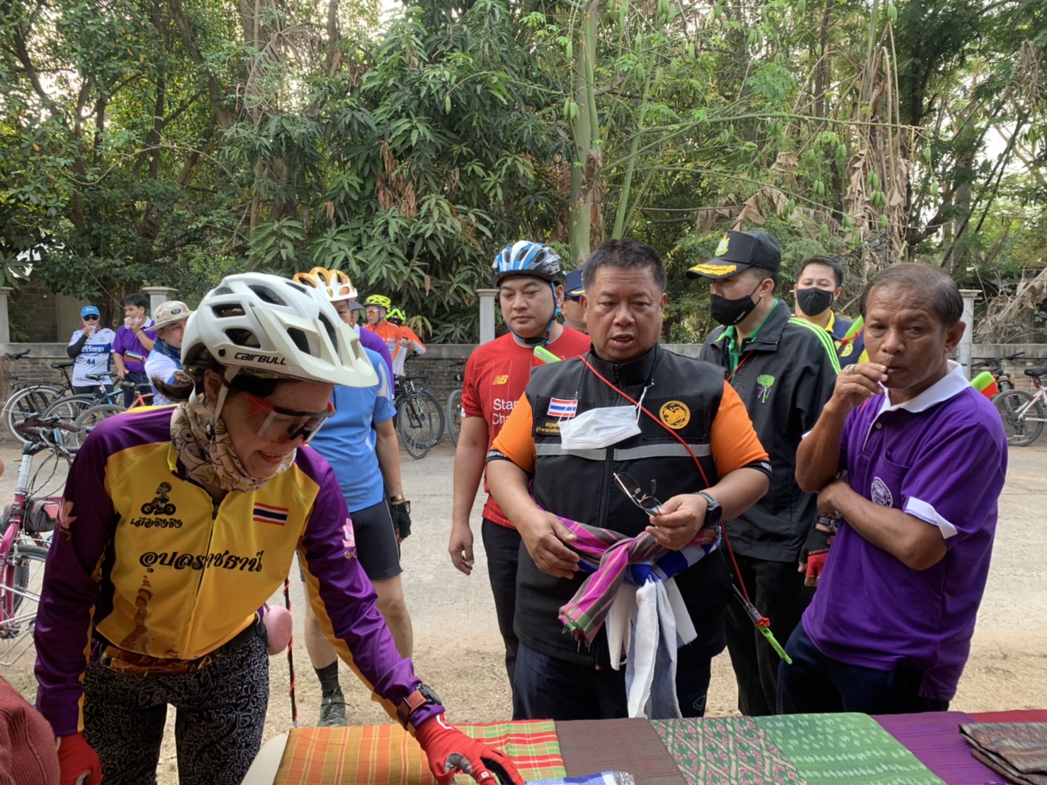 ประมงอำเภอเขื่องใน ร่วมกิจกรรมปั่นรักษ์เมือง ครั้งที่ 3 กิจกรรมห่มต้นไม้ ชมตลาดชุมชนอาหารพื้นบ้านปลอดสารพิษ บริเวณหนองใหญ่ ม.8 ต.ยางขี้นก อ.เขื่องใน จ.อุลลราชธานี