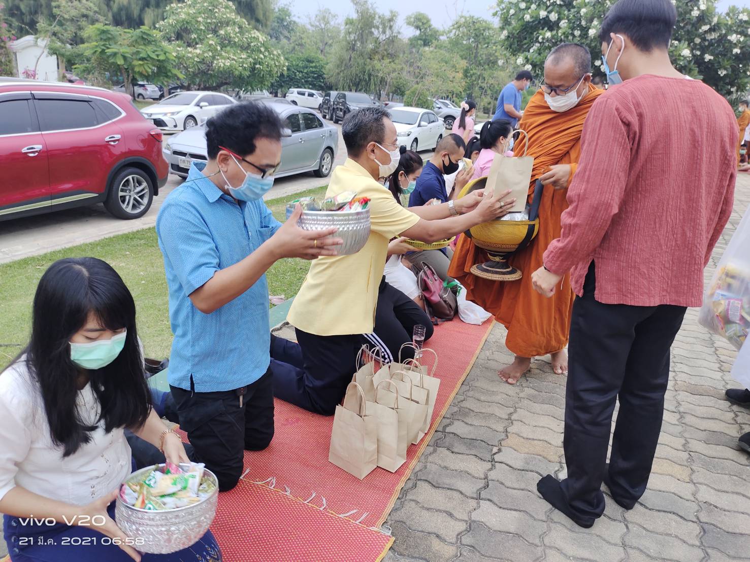 ประมงจังหวัดอุบลราชธานี พร้อมด้วยคณะเจ้าหน้าที่สำนักงานฯ ร่วมพิธีทำบุญตักบาตรพระสงฆ์ ภายใต้กิจกรรม "หิ้วตะกร้า ใส่ผ้ากาบบัว ตักบาตร ที่ทุ่งศรีเมือง" ประจำเดือนมีนาคม 2564