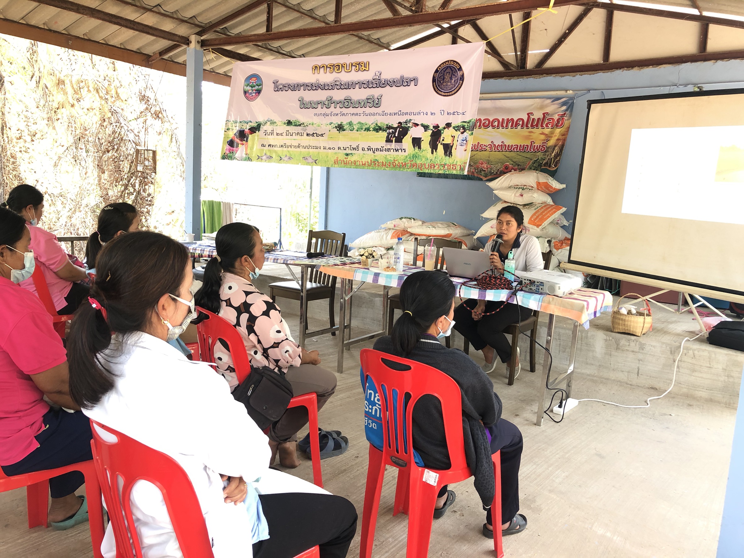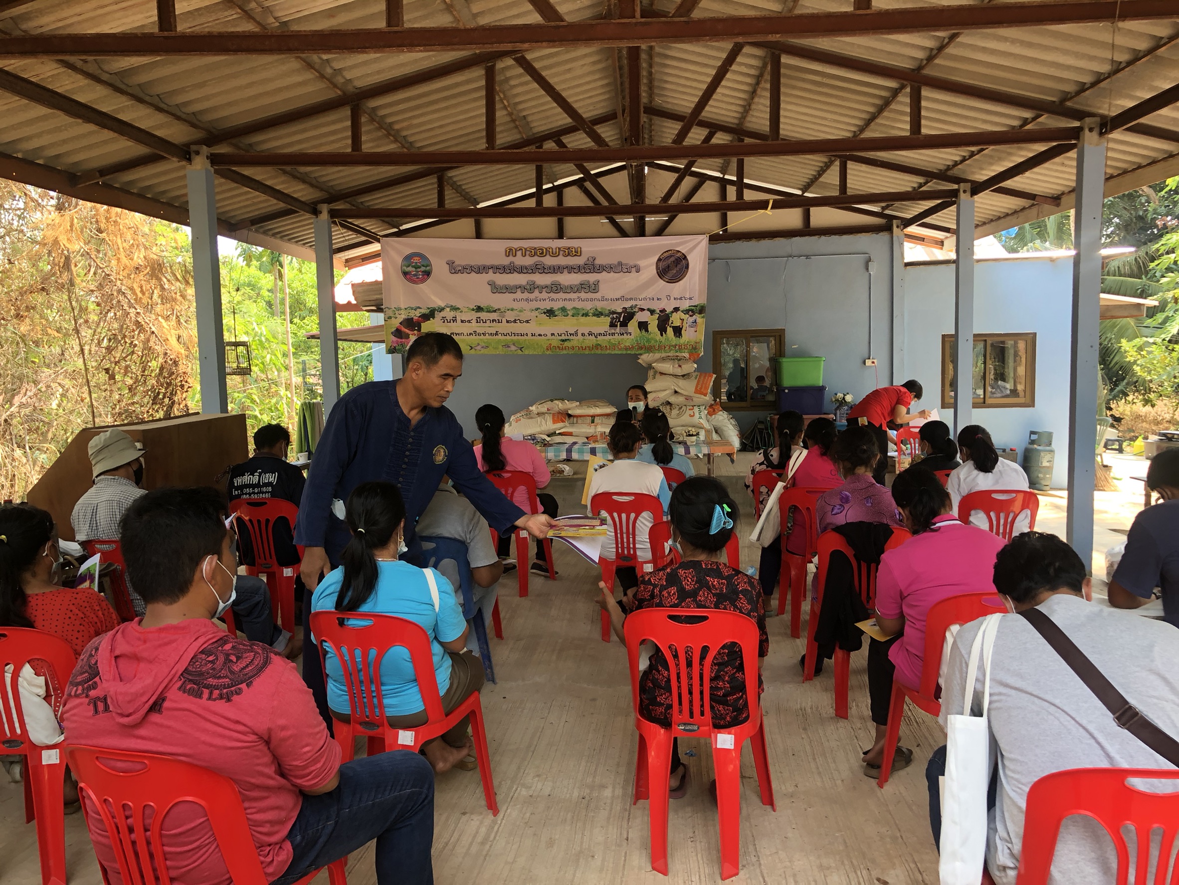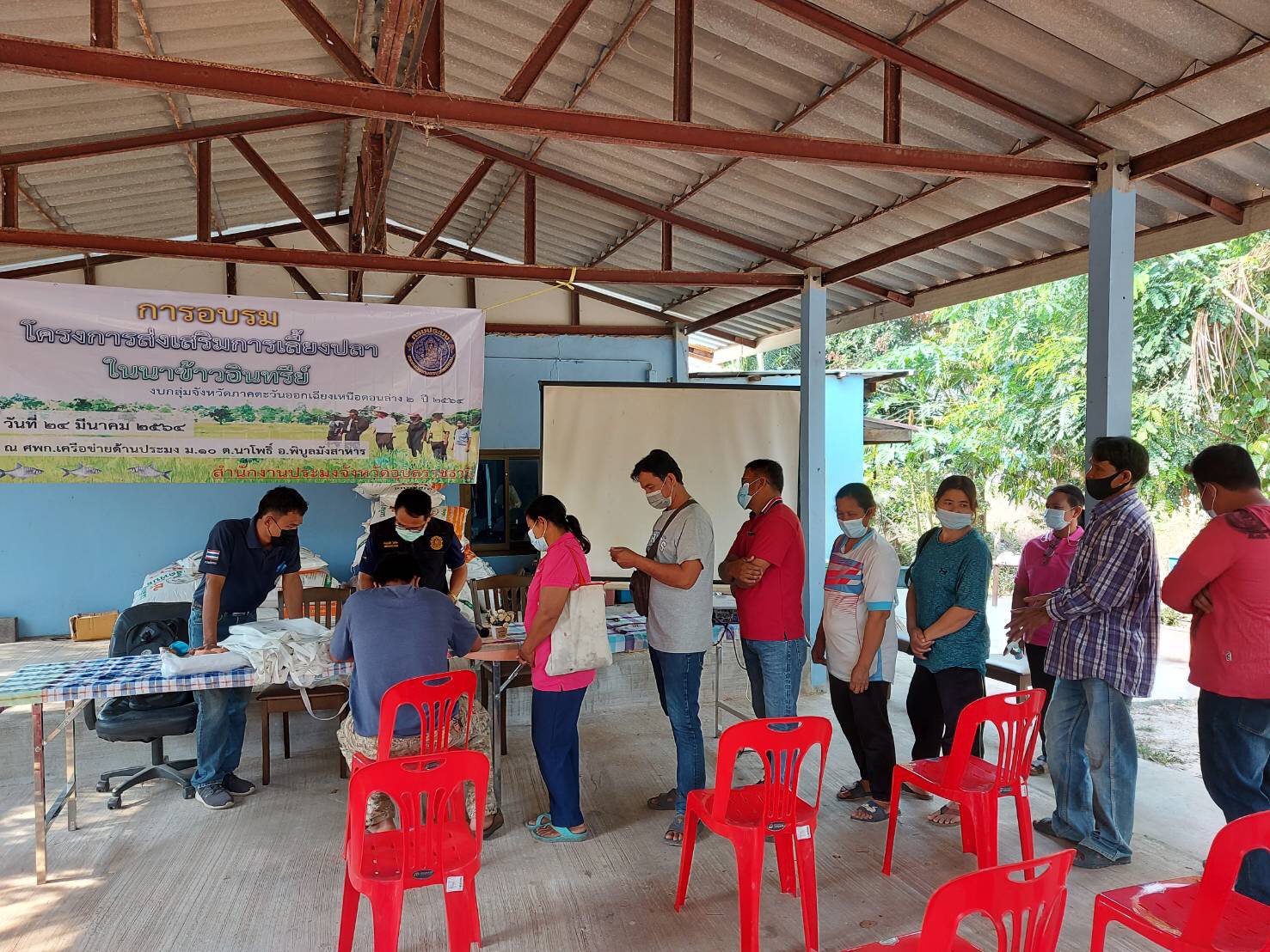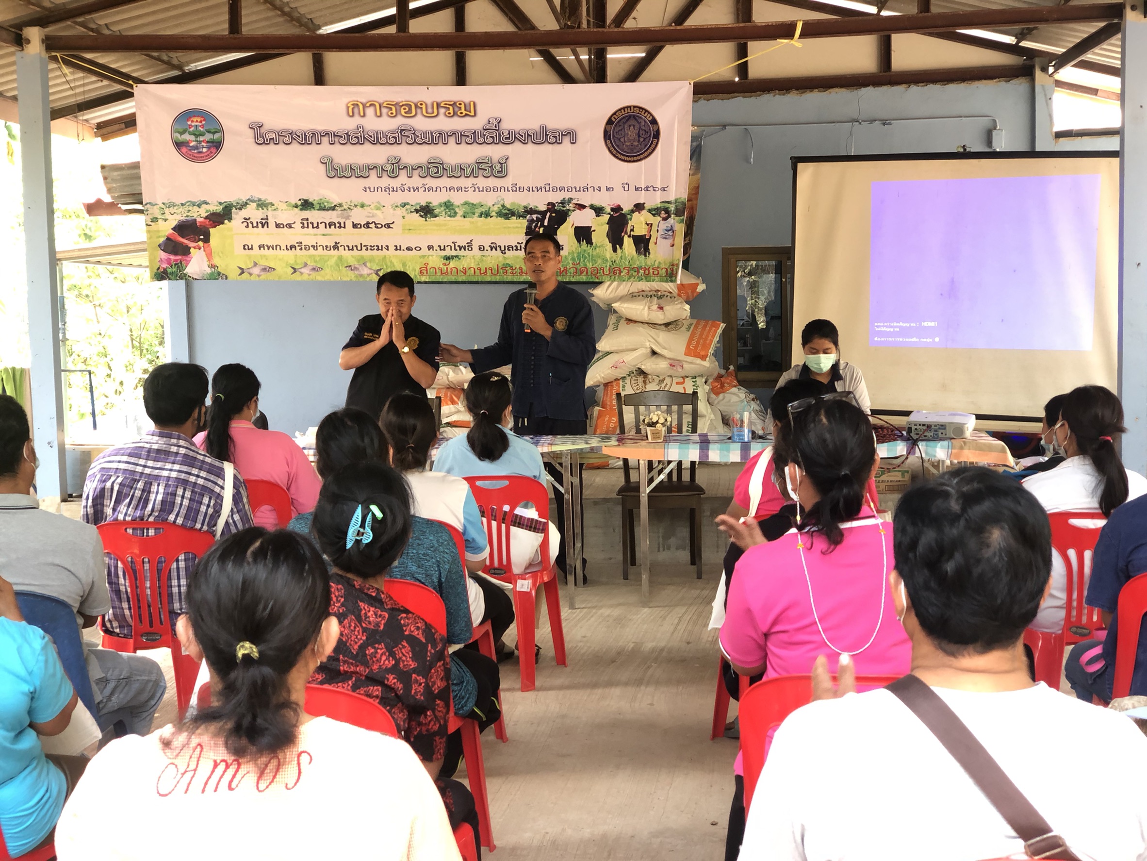 นายประชุม ดวนใหญ่ นักวิชาการประมงชำนาญการพิเศษ และนายบัญชา ไกยสิทธิ์ นักวิชาการประมง ร่วมกับนายบัญญัติ ไฝ่จิต ประมงพิบูลมังสาหาร ลงพื้นที่ดำเนินงานตามโครงการส่งเสริมการเลี้ยงปลาในนาข้าวอินทรีย์ งบกลุ่มจังหวัดภาคตะวันออกเฉียงเหนือตอนล่าง 2 ปี 2564 จัดอบรมเสริมสร้างองค์ความรู้ด้านการเลี้ยงสัตว์น้ำอินทรีย์ แก่เกษตรกร จำนวน 25 ราย  ณ ศูนย์ศพก.เครือข่ายด้านประมง ตำบลนาโพธิ์ อำเภอพิบูลมังสาหาร จังหวัดอุบลราชธานี ซึ่งในวันนี้ได้รับเกียรติจากเจ้าหน้าที่ศูนย์วิจัยและพัฒนาประมงน้ำจืดอุบลราชธานี และเจ้าหน้าที่จากสำนักงานตรวจบัญชีสหกรณ์อุบลราชธานี ที่ร่วมบูรณางานถ่ายทอดองค์ความรู้ด้านการเพาะเลี้ยงสัตว์น้ำตามมาตรฐานสัตว์น้ำอินทรีย์ และการจัดทำบัญชีรายรับ – รายจ่าย แก่เกษตรกรที่เข้าร่วมโครงการฯ