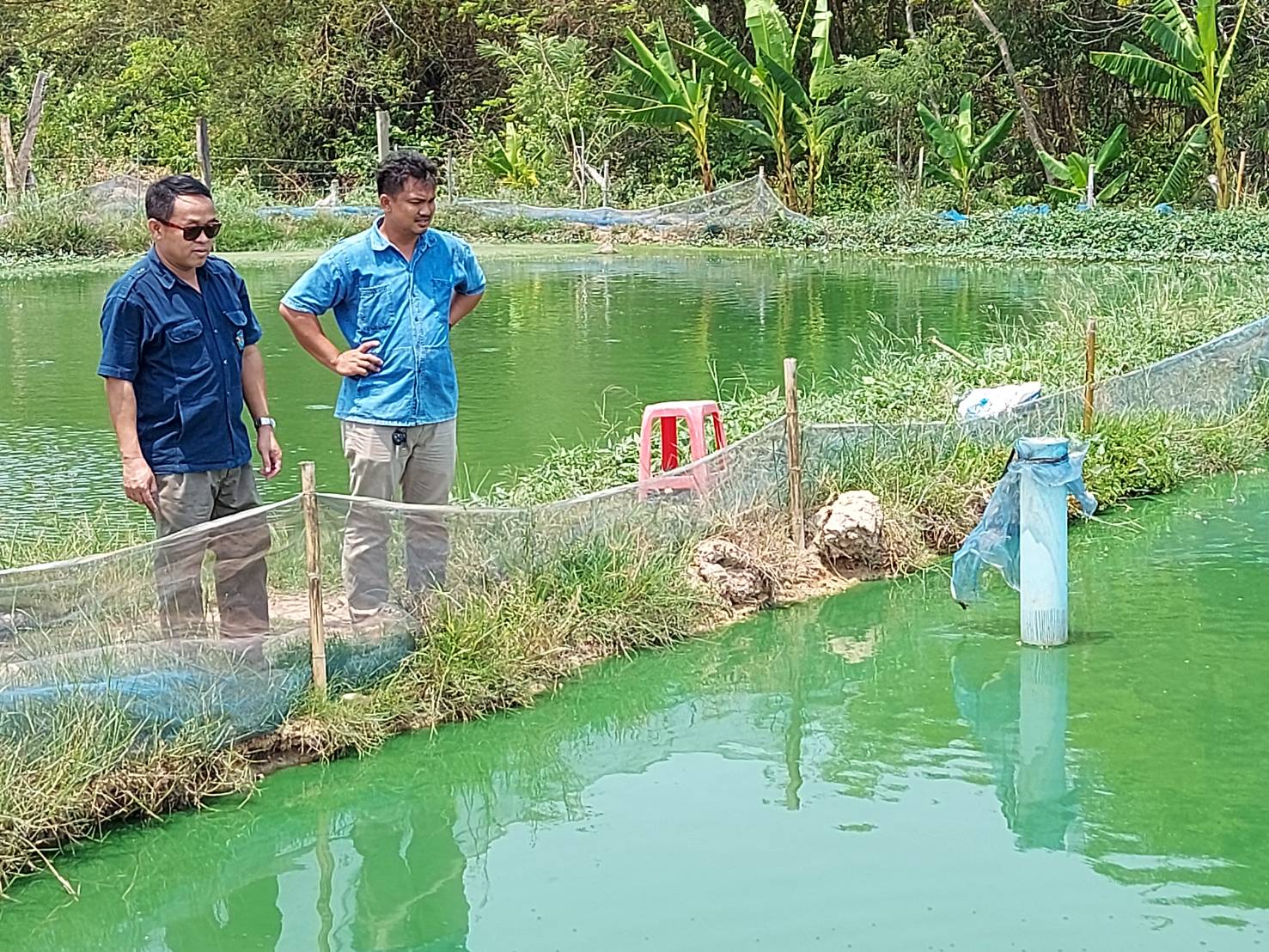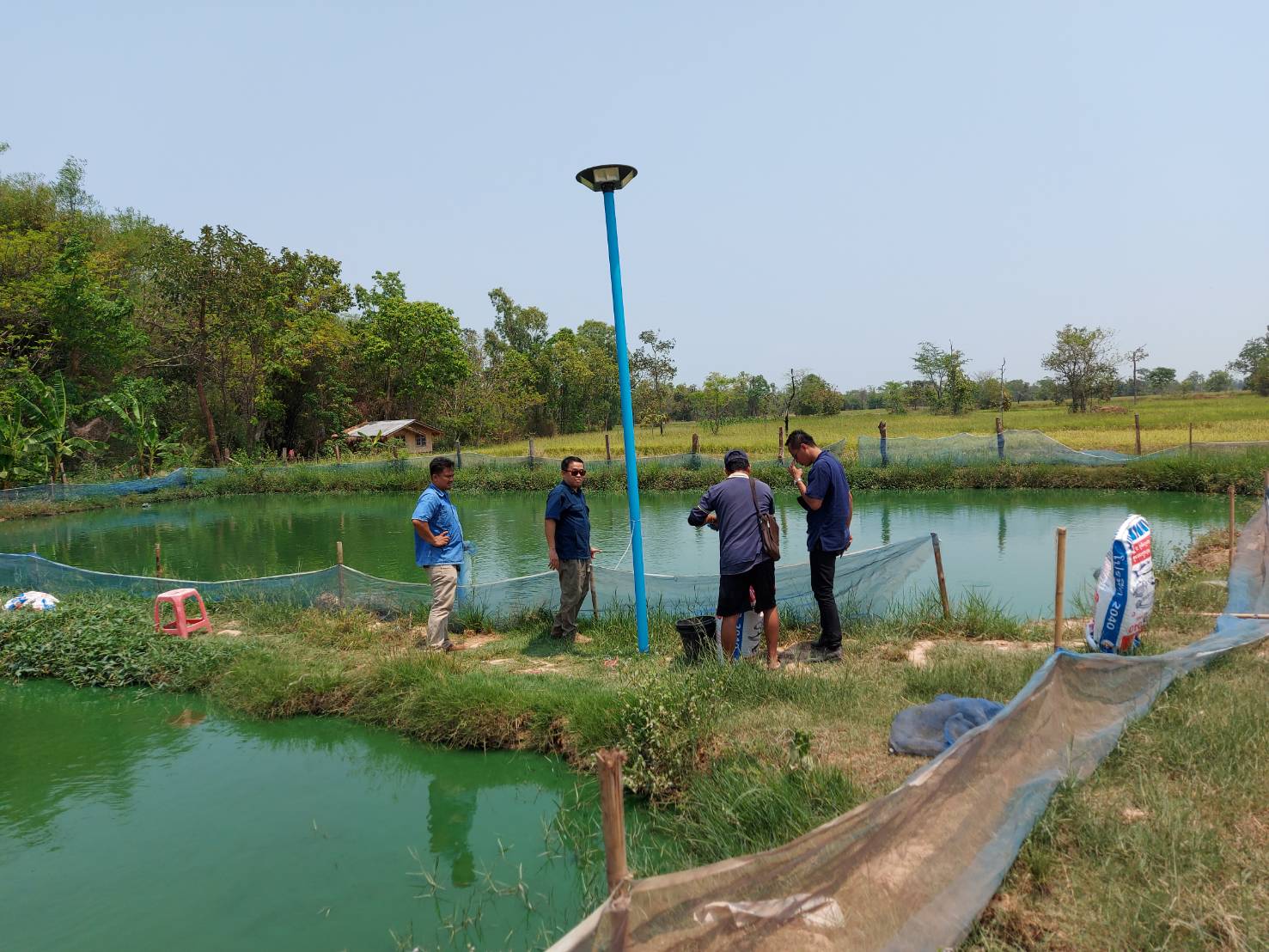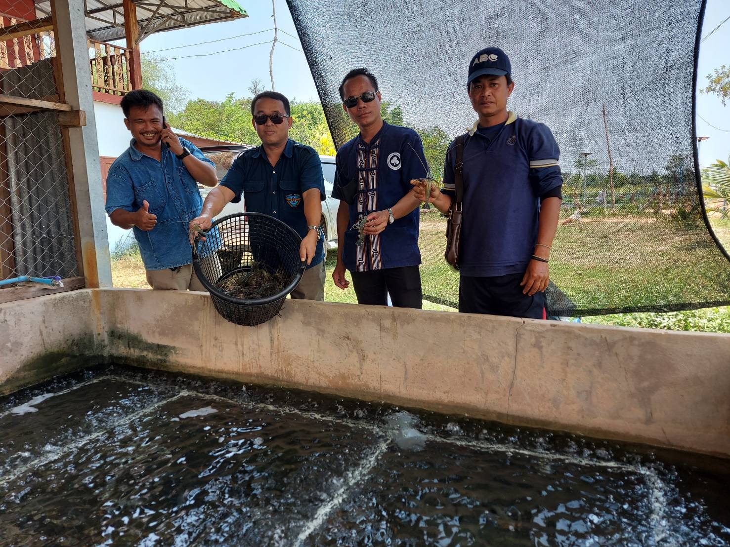 ประมงอำเภอพิบูลมังสาหาร ลงพื้นที่ บ้านแก่งเจริญ ต.ดอนจิก อ.พิบูลมังสาหาร จ.อุบลราชธานีเพื่อติดตามฟาร์มเลี้ยงปลาช่อนและกุ้งก้ามกราม