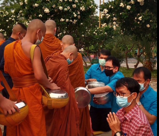 เจ้าหน้าที่สำนักงานประมงจังหวัดอุบลราชธานี ร่วมพิธีทำบุญตักบาตรพระสงฆ์  "หิ้วตะกร้า ใส่ผ้ากาบบัว ตักบาตร ณ บริเวณลานพิธีทุ่งศรีเมือง อำเภอเมืองอุบลราชธานี จังหวัดอุบลราชธานี