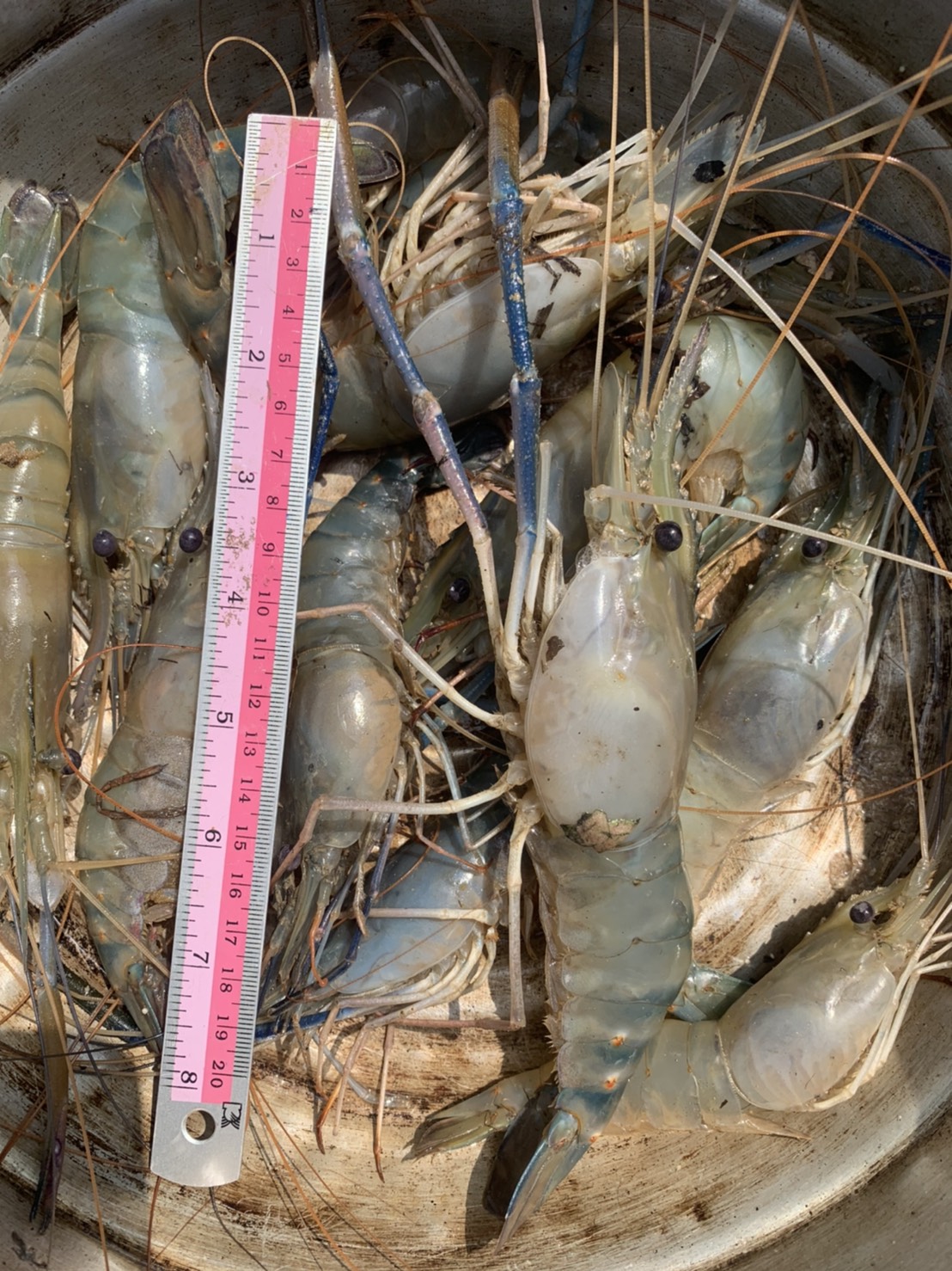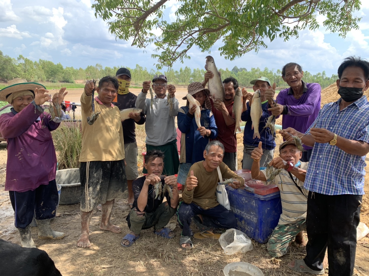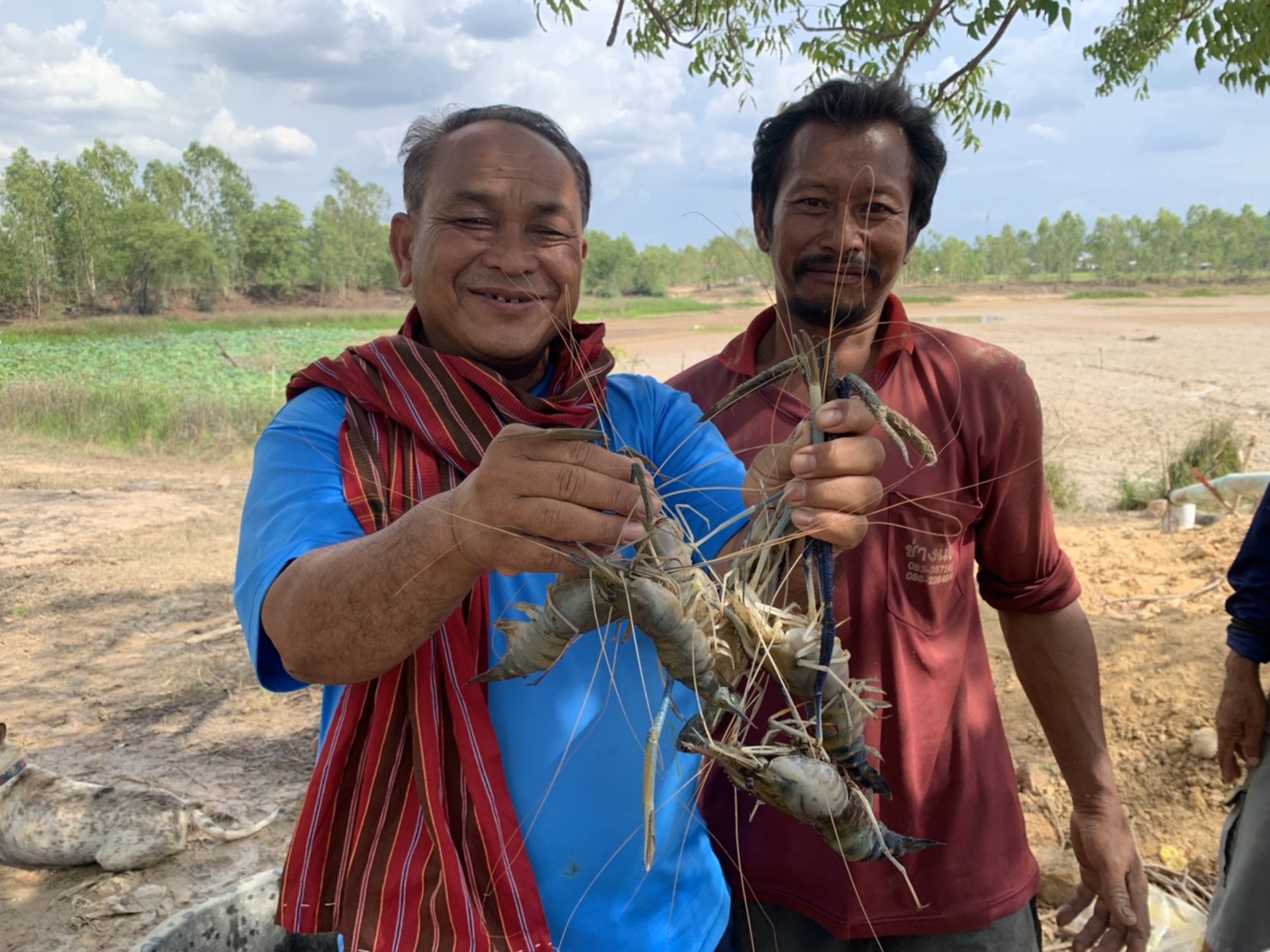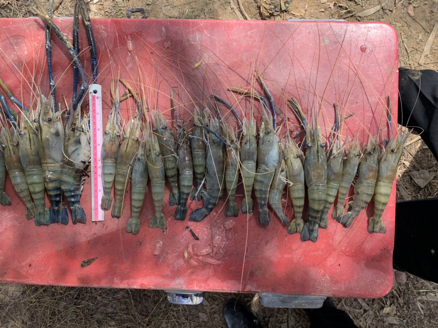 ประมงอำเภอเขื่องใน ดำเนินการติดตามผลผลิตกุ้งก้ามกราม ที่ปล่อยลงในแหล่งน้ำ โครงการสร้างรายได้จากอาชีพประมงในแหล่งน้ำชุมชน อำเภอเขื่องใน จังหวัดอุบลราชธานี