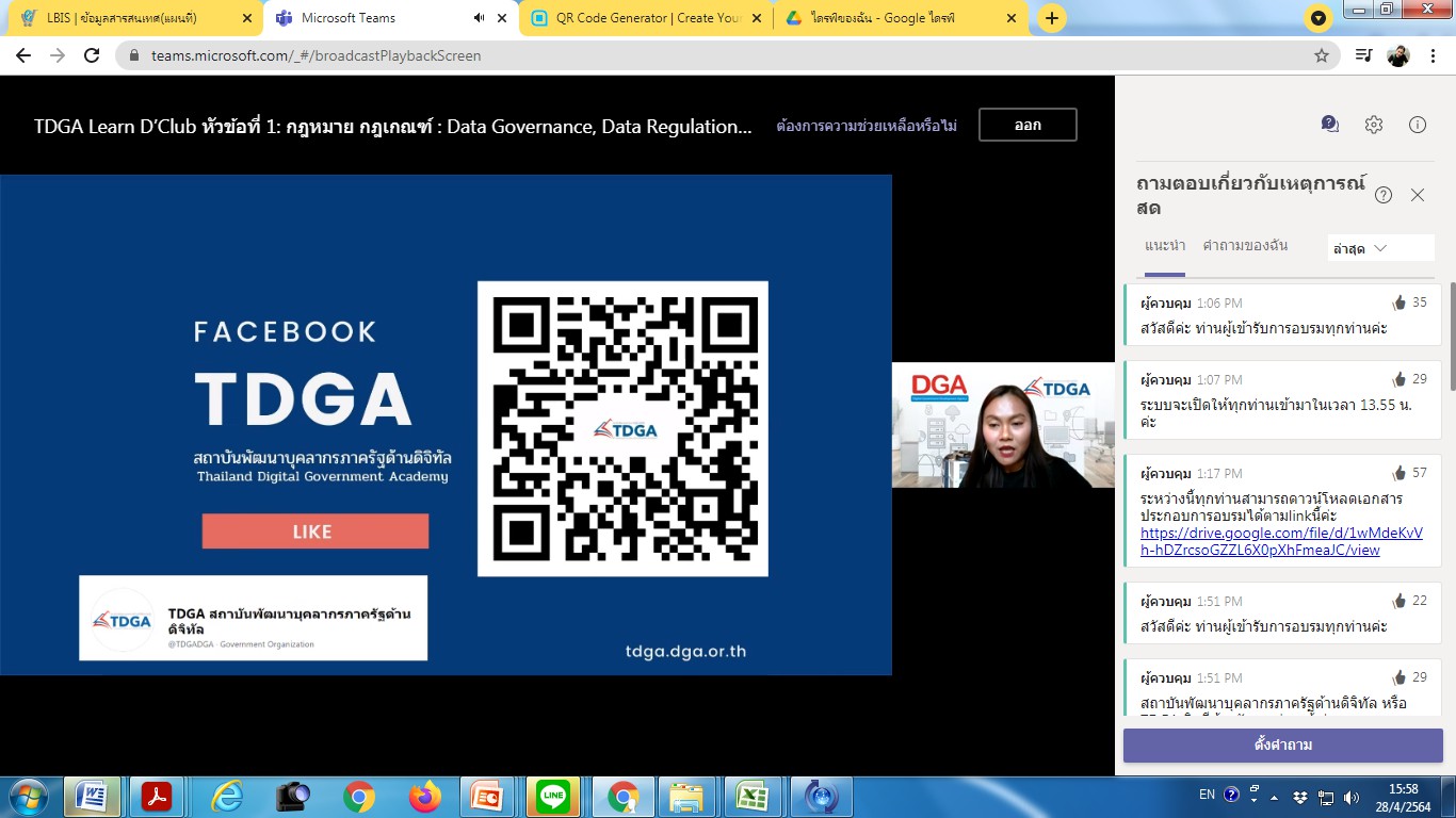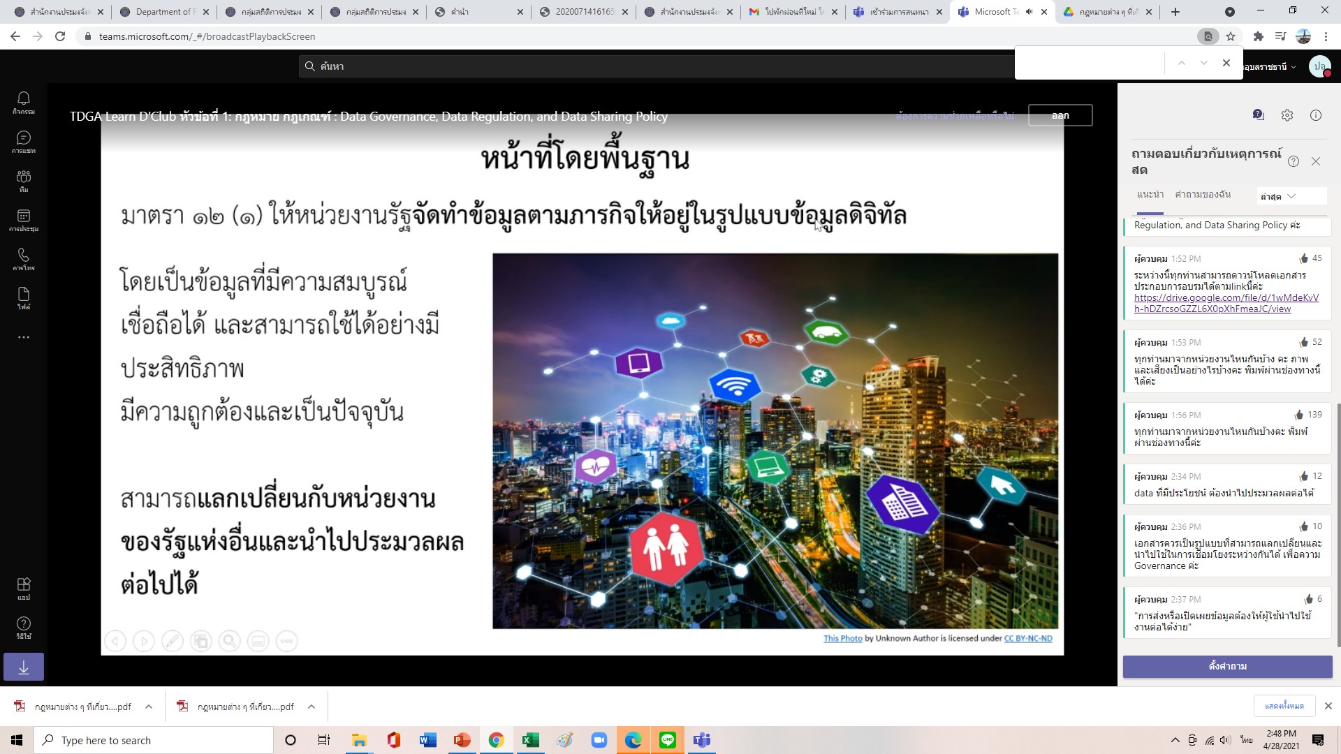 การอบรมทักษะดิจิทัลแบบออนไลน์ TDGA Learn D’Club : Data driven government for all หัวข้อที่ 1 กฎหมาย กฎเกณฑ์ : Data Governance, Data Regulation, and Data Sharing Policy