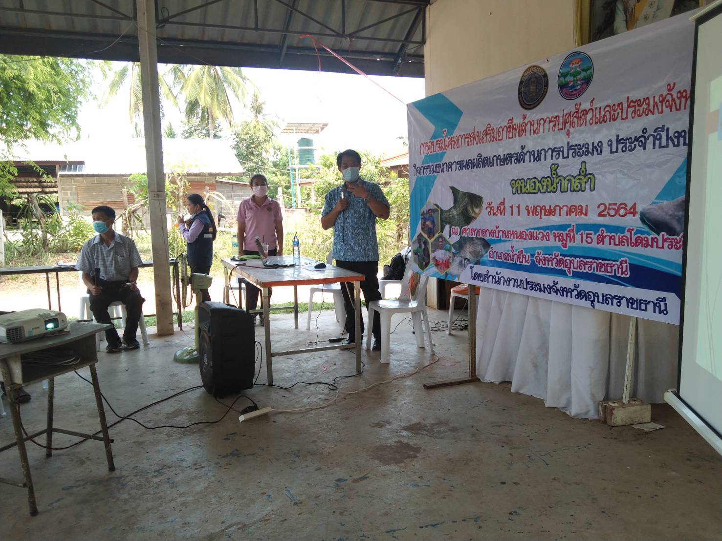 การจัดอบรมโครงการส่งเสริมอาชีพปศุสัตว์และประมง จังหวัดอุบลราชธานี กิจกรรมธนาคารผลิตเกษตรด้านการประมง ประจำปี 2564 ให้ความรู้แก่คณะกรรมการบริหารจัดการแหล่งน้ำหนองน้ำกล่ำ อำเภอน้ำยืน จังหวัดอุบลราชธานี