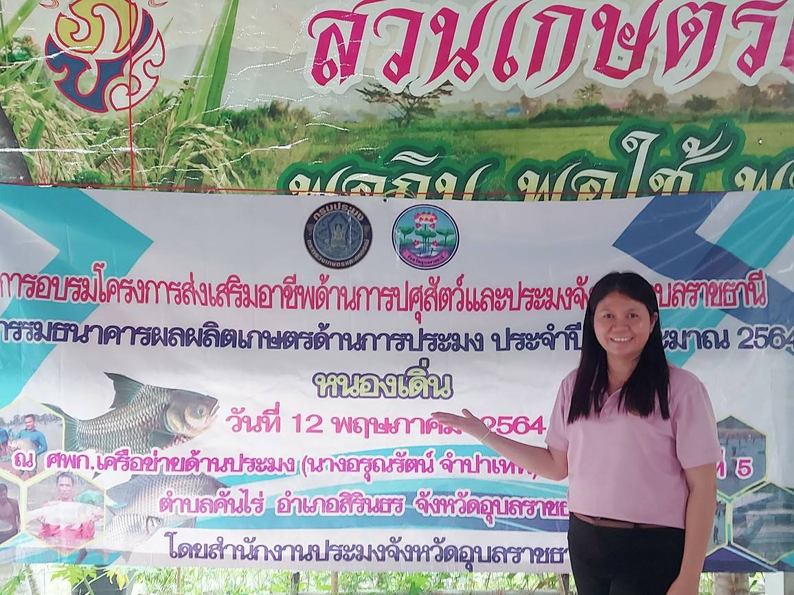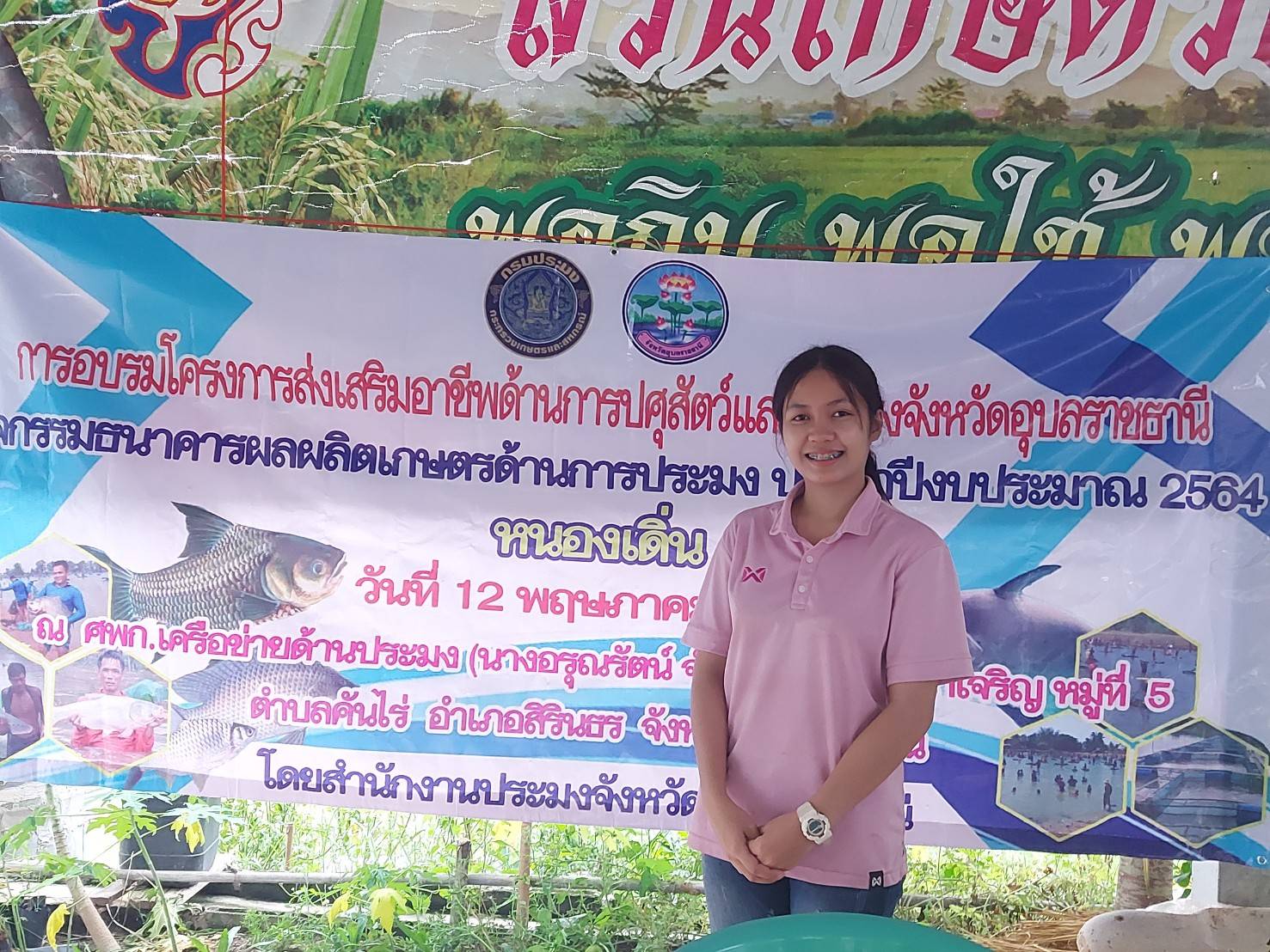 วันที่ 11 พฤษภาคม 2564 นางสาวกานต์รวี รักผล ประมงอำเภอสิรินธร จัดเตรียมสถานที่จัดอบรม โครงการส่งเสริมอาชีพด้านการปศุสัตว์ และประมงจังหวัดอุบลราชธานี กิจกรรมธนาคารผลผลิตด้านการประมง ประจำปีงบประมาณ 2564  (แหล่งน้ำชุมชนหนองเดิ่น) ณ ศพก. เครือข่ายด้านประมง (นางอรุณรัตน์ จำปาเทพ) หมู่ 5 ต.คันไร่ อ.สิรินธร จ.อุบลราชธานี