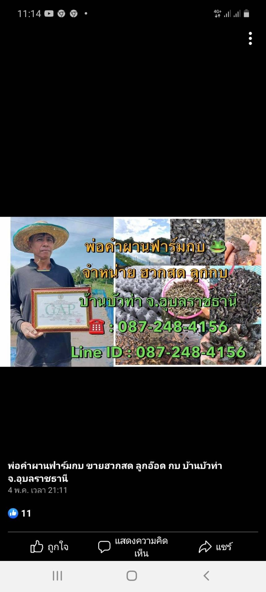 สนใจติดต่อซื้อสินค้าได้ที่ "พ่อคำผาน ฟาร์มกบ" โทร.087-2484156
