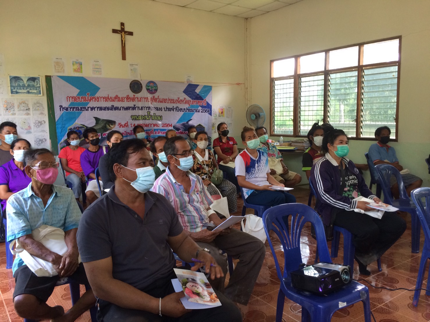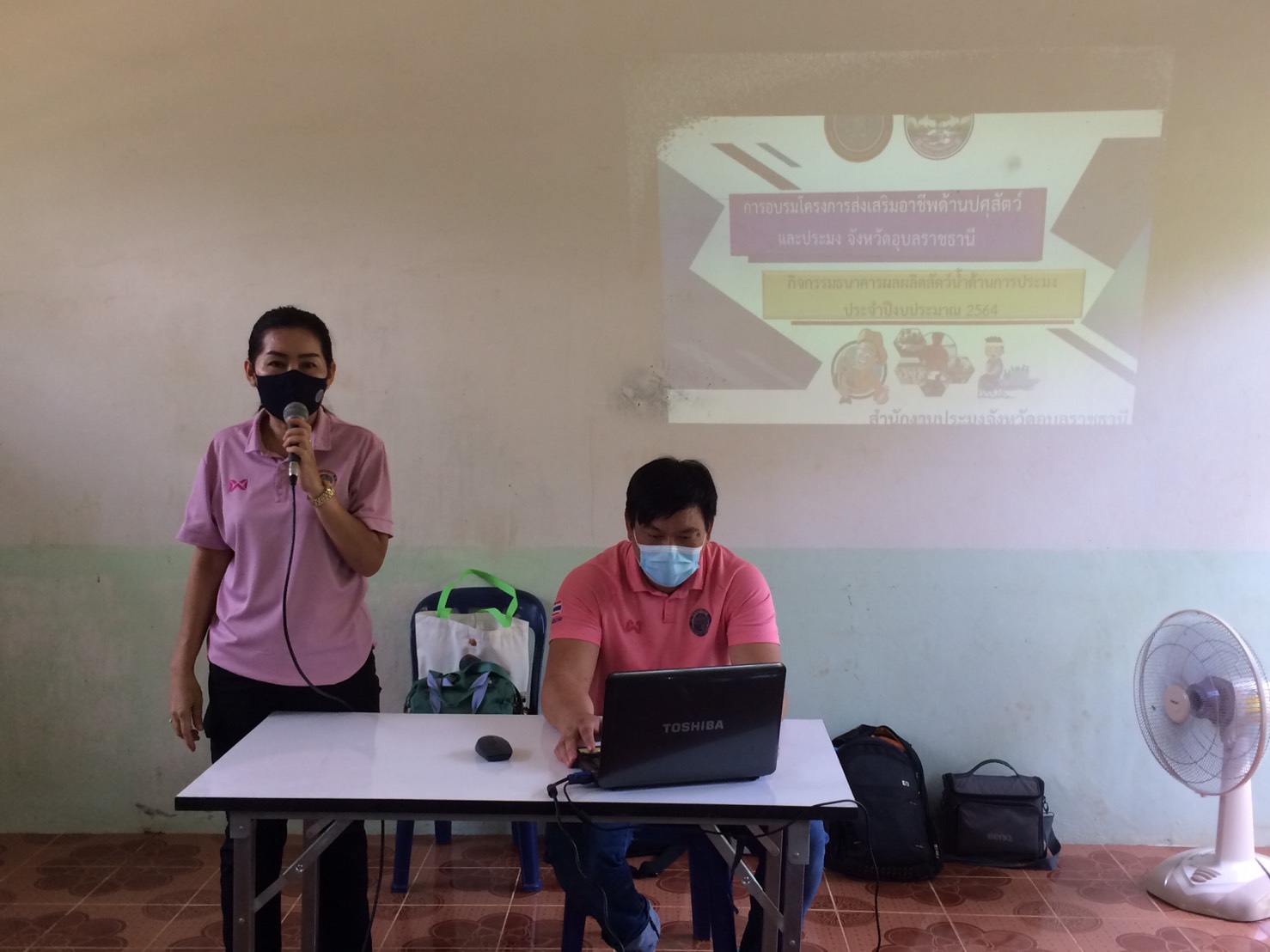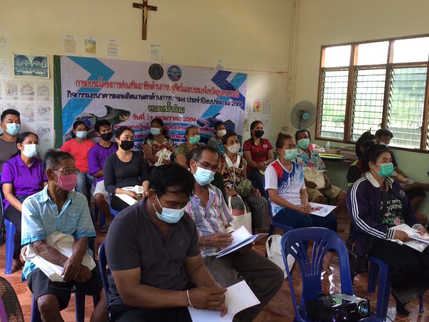 การอบรมโครงการส่งเสริมอาชีพปศุสัตว์และประมง จังหวัดอุบลราชธานี กิจกรรมธนาคารผลิตเกษตรด้านการประมง ประจำปี 2564 ให้ความรู้แก่คณะกรรมการบริหารจัดการแหล่งน้ำหนองน้ำอ้อม