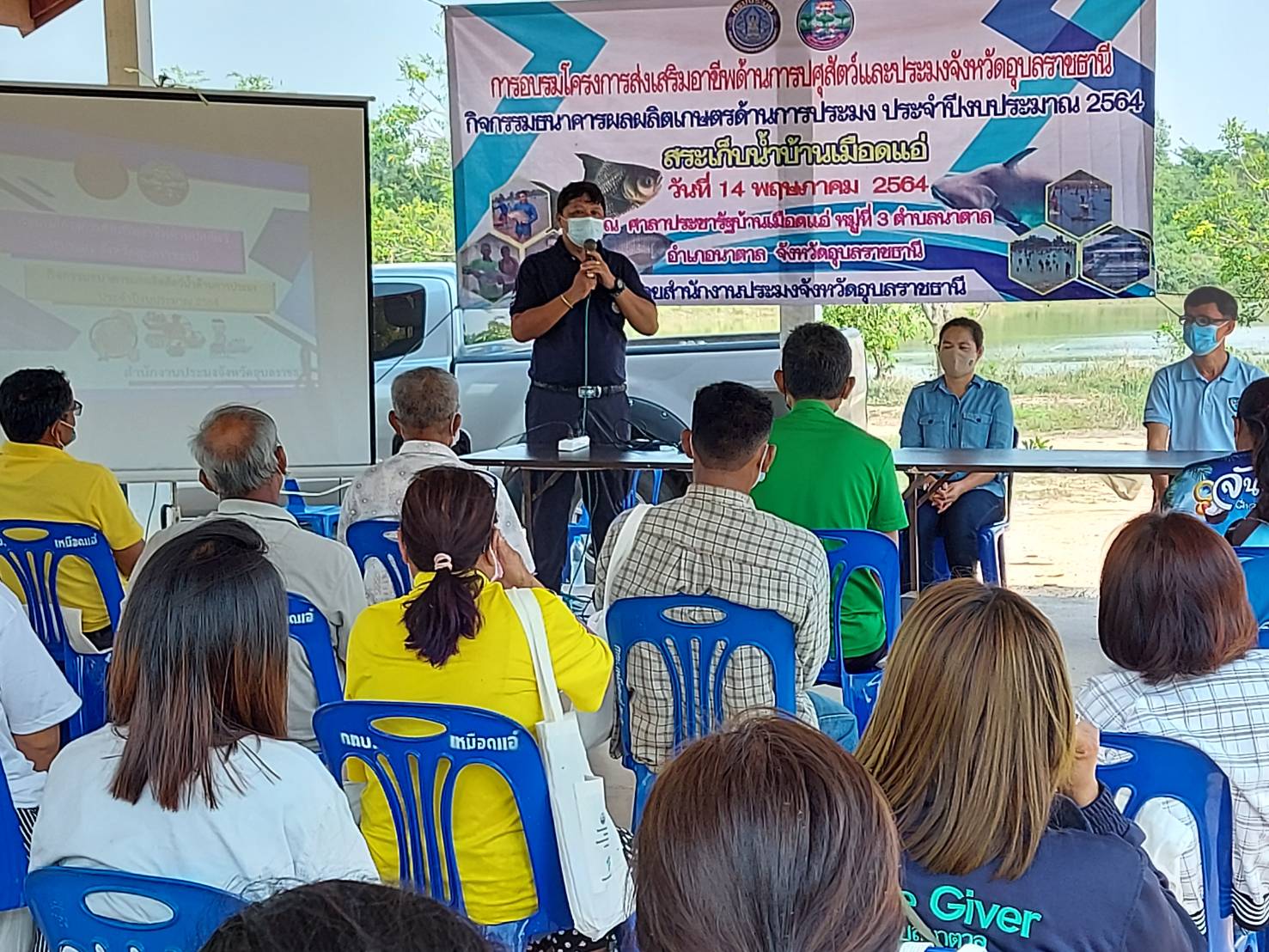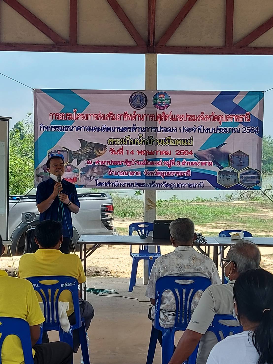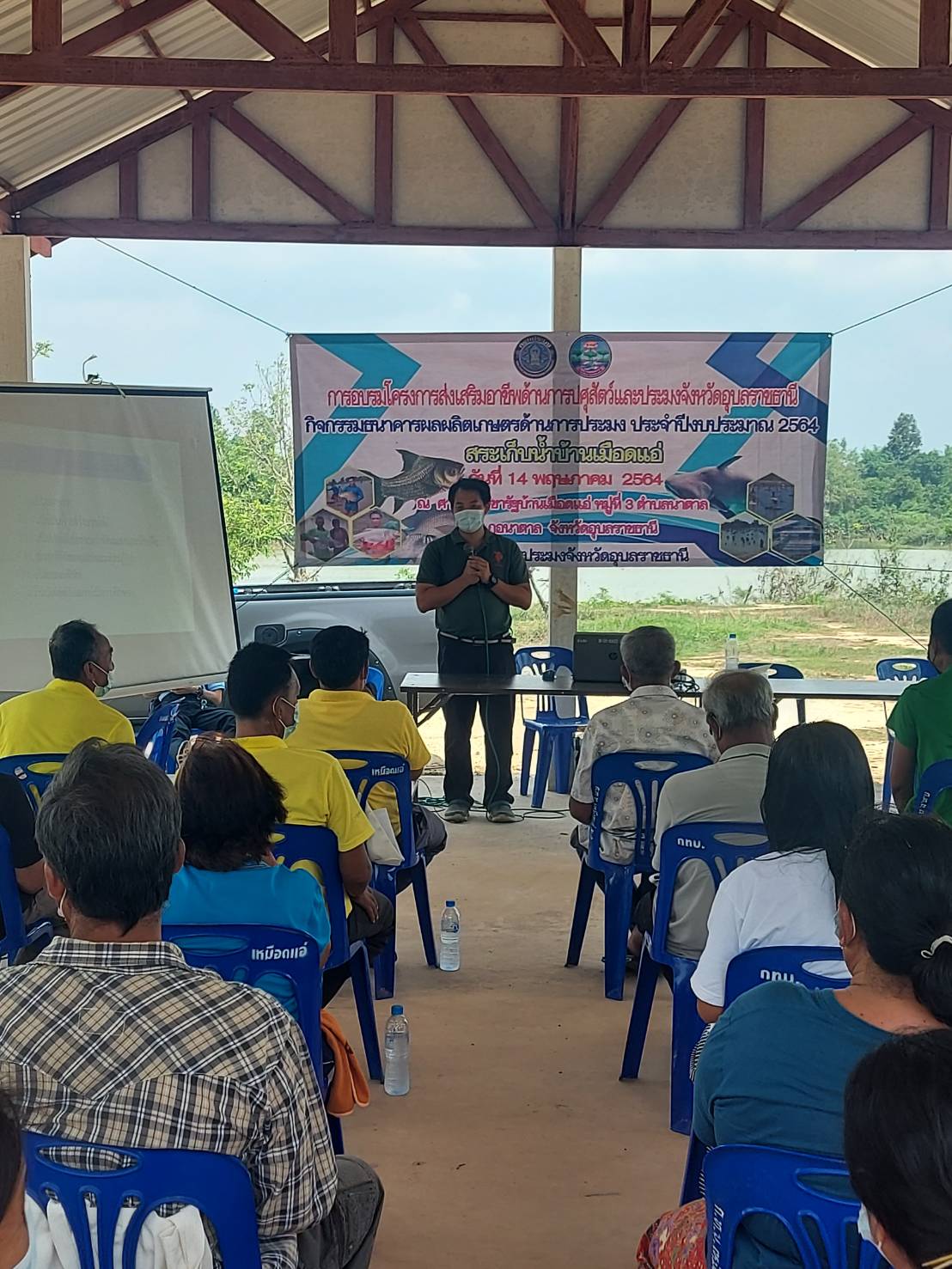 การอบรมโครงการส่งเสริมอาชีพปศุสัตว์และประมง จังหวัดอุบลราชธานี กิจกรรมธนาคารผลิตเกษตรด้านการประมง ประจำปี 2564 ให้ความรู้แก่คณะกรรมการบริหารจัดการแหล่งน้ำอ่างเก็บน้ำเหมือดแอ่