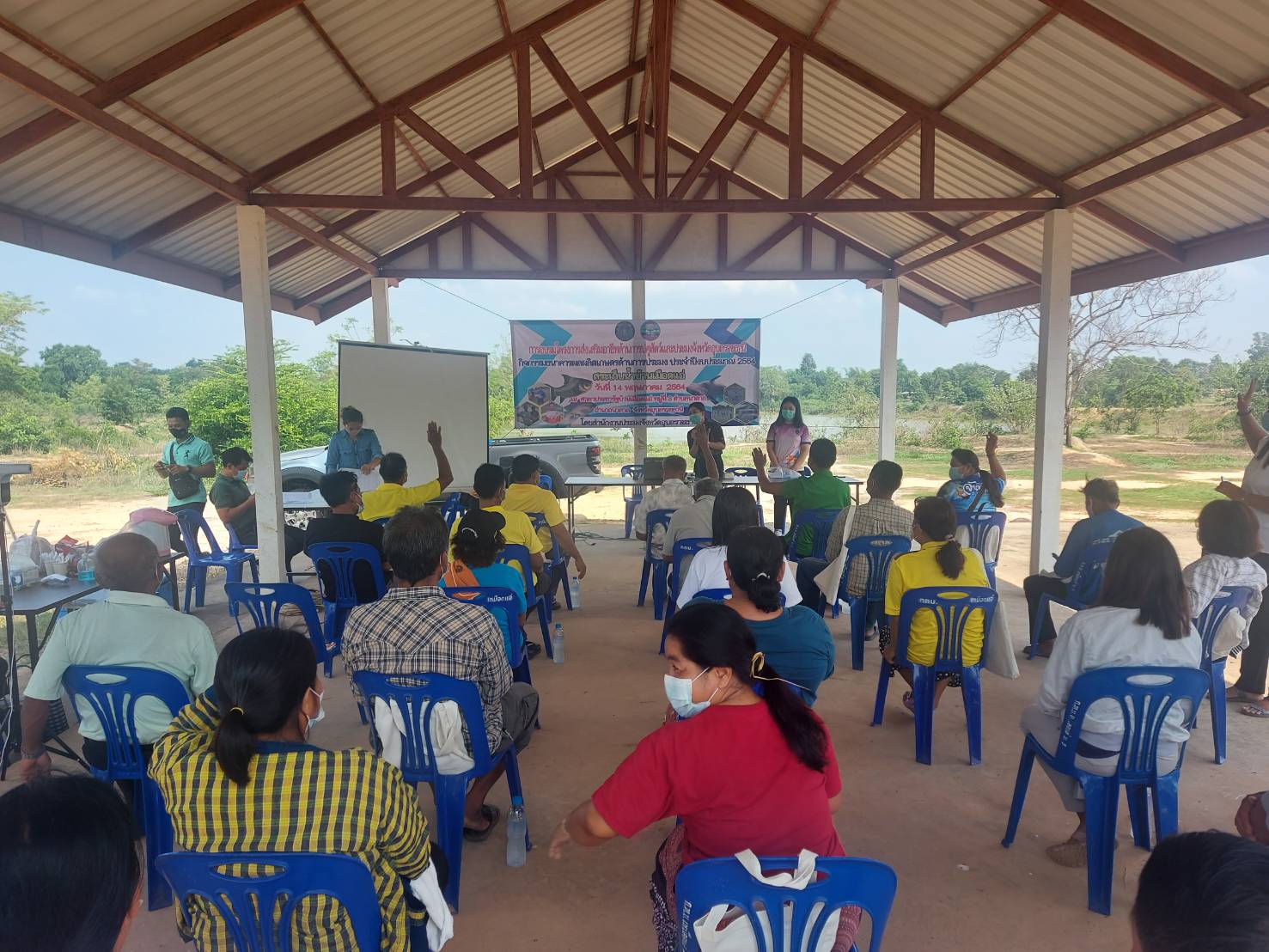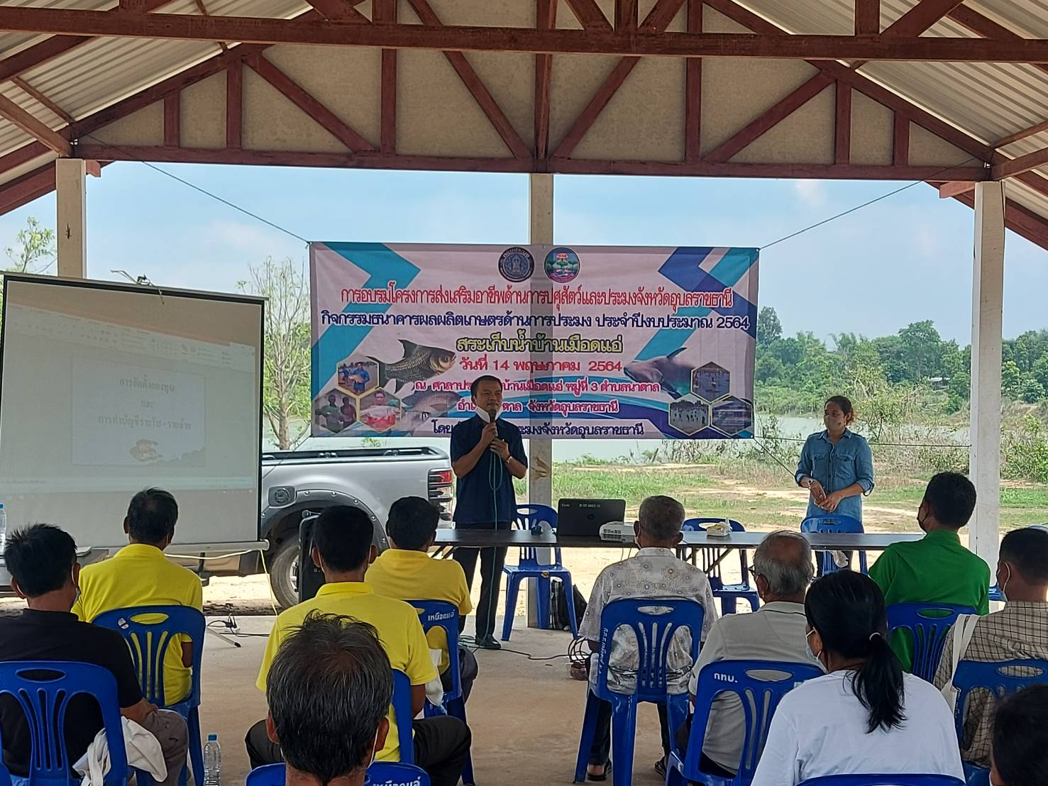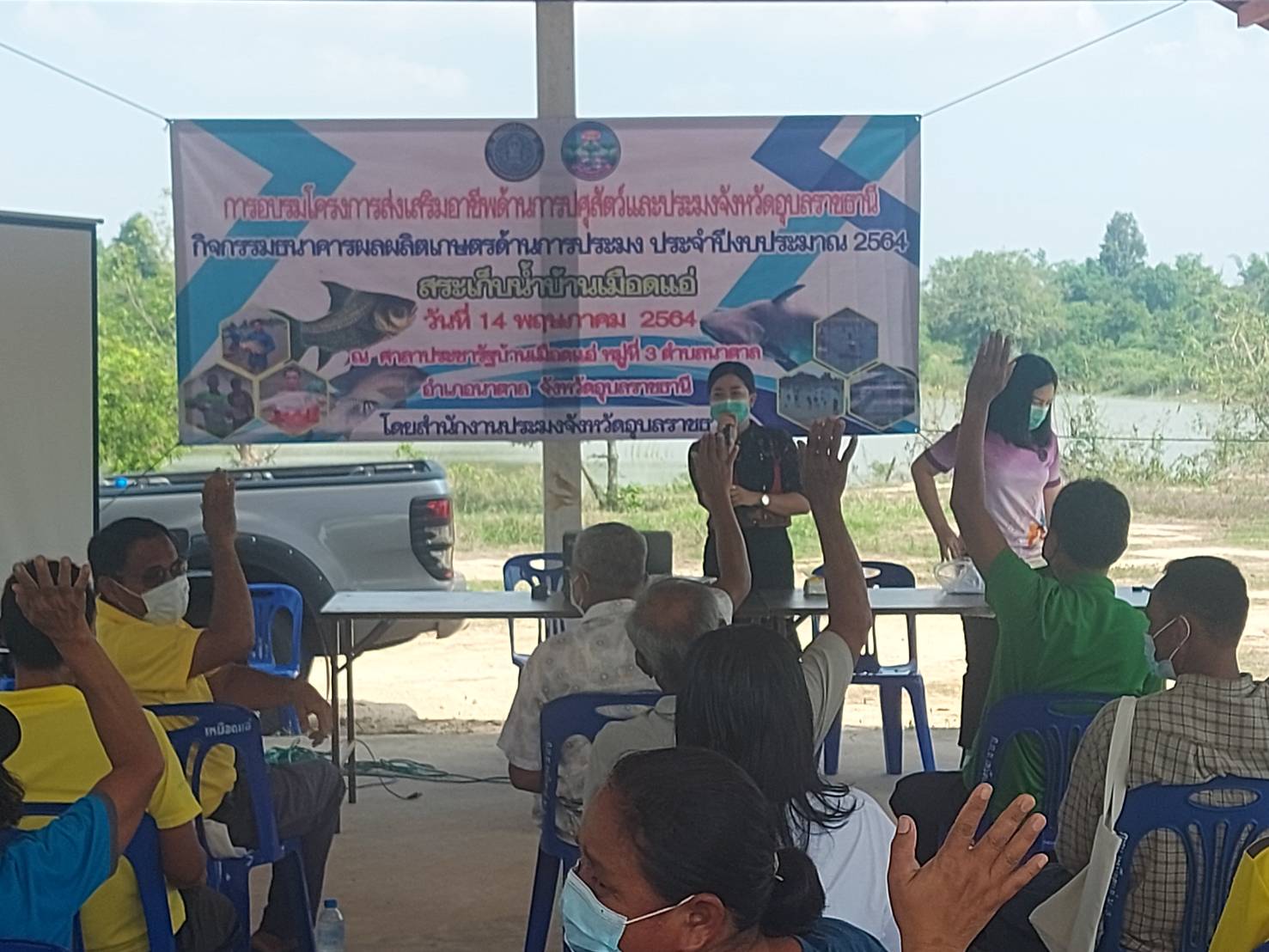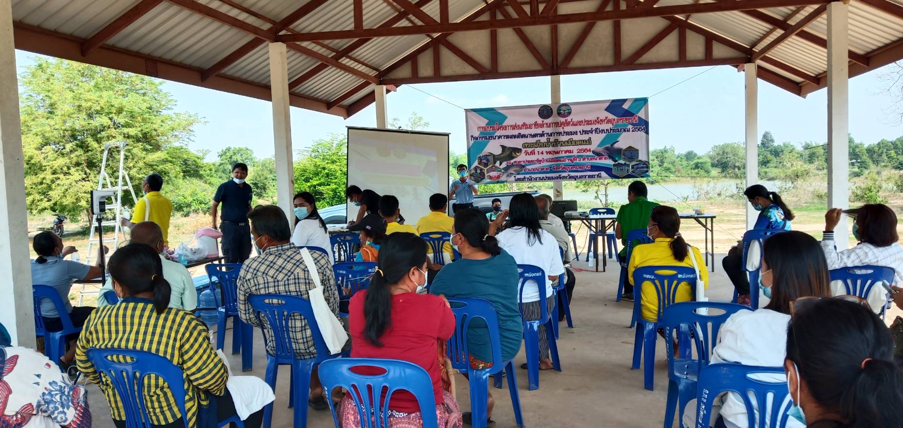 การอบรมโครงการส่งเสริมอาชีพปศุสัตว์และประมง จังหวัดอุบลราชธานี กิจกรรมธนาคารผลิตเกษตรด้านการประมง ประจำปี 2564 ให้ความรู้แก่คณะกรรมการบริหารจัดการแหล่งน้ำอ่างเก็บน้ำเหมือดแอ่