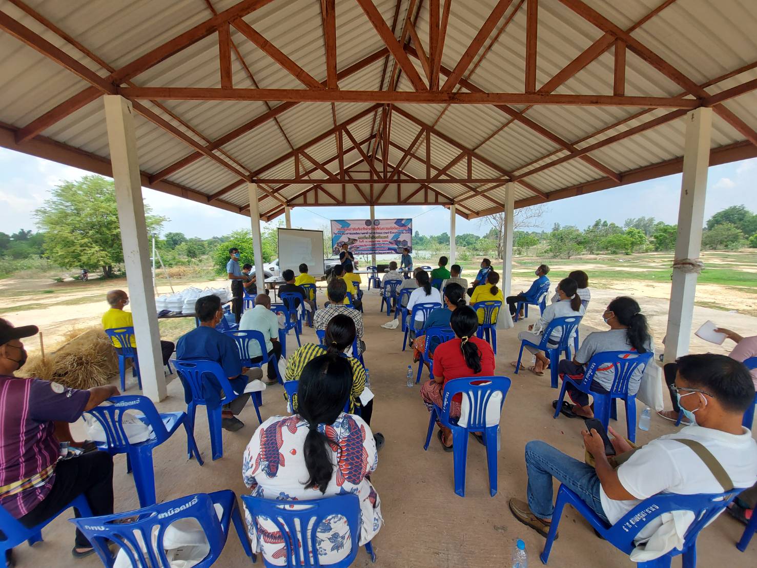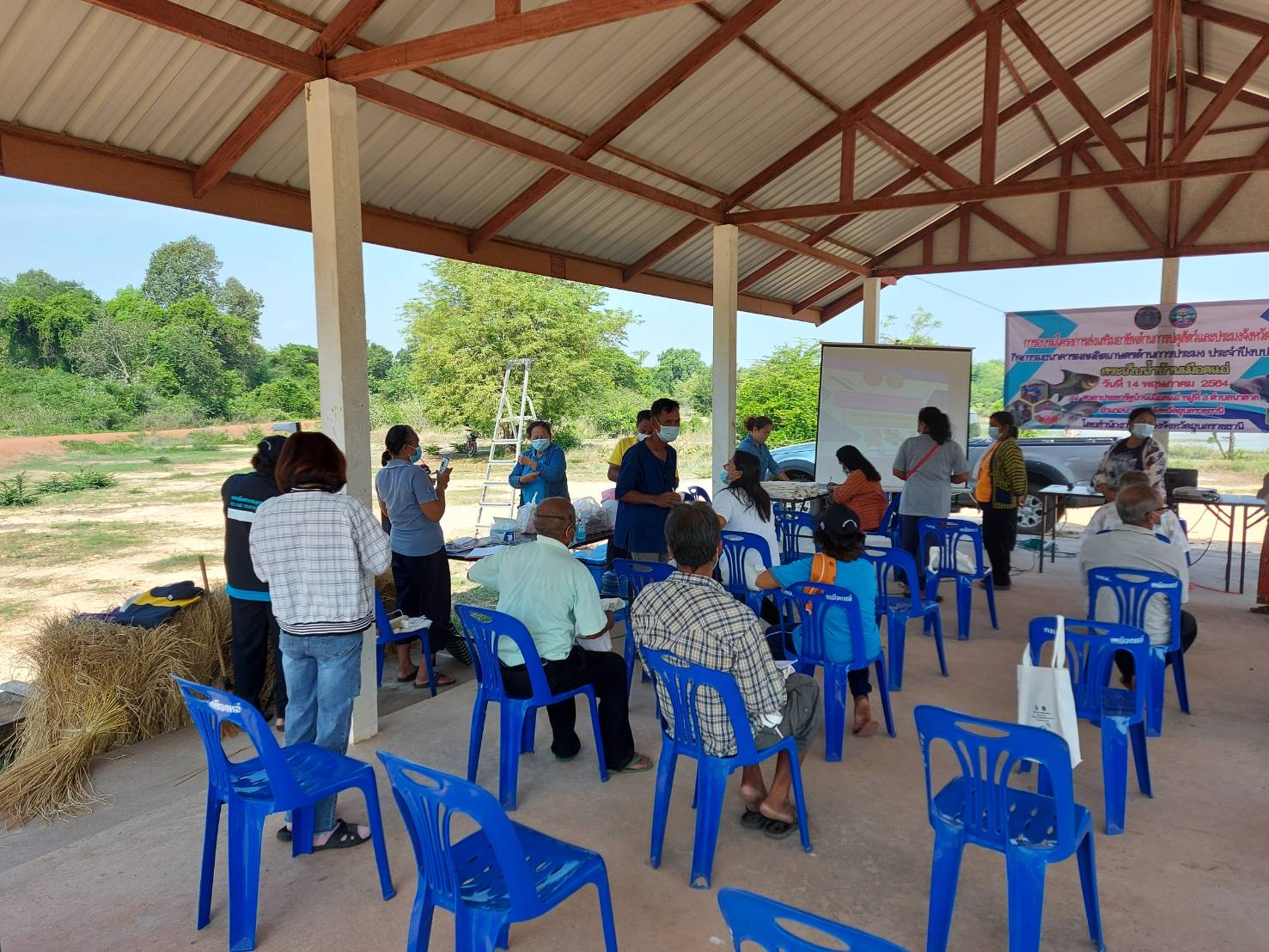 จัดอบรมโครงการส่งเสริมอาชีพปศุสัตว์และประมง จังหวัดอุบลราชธานี กิจกรรมธนาคารผลิตเกษตรด้านการประมง ประจำปี 2564 ให้ความรู้แก่คณะกรรมการบริหารจัดการแหล่งน้ำอ่างเก็บน้ำเหมือดแอ่ จำนวน 30 ราย ดังนี้