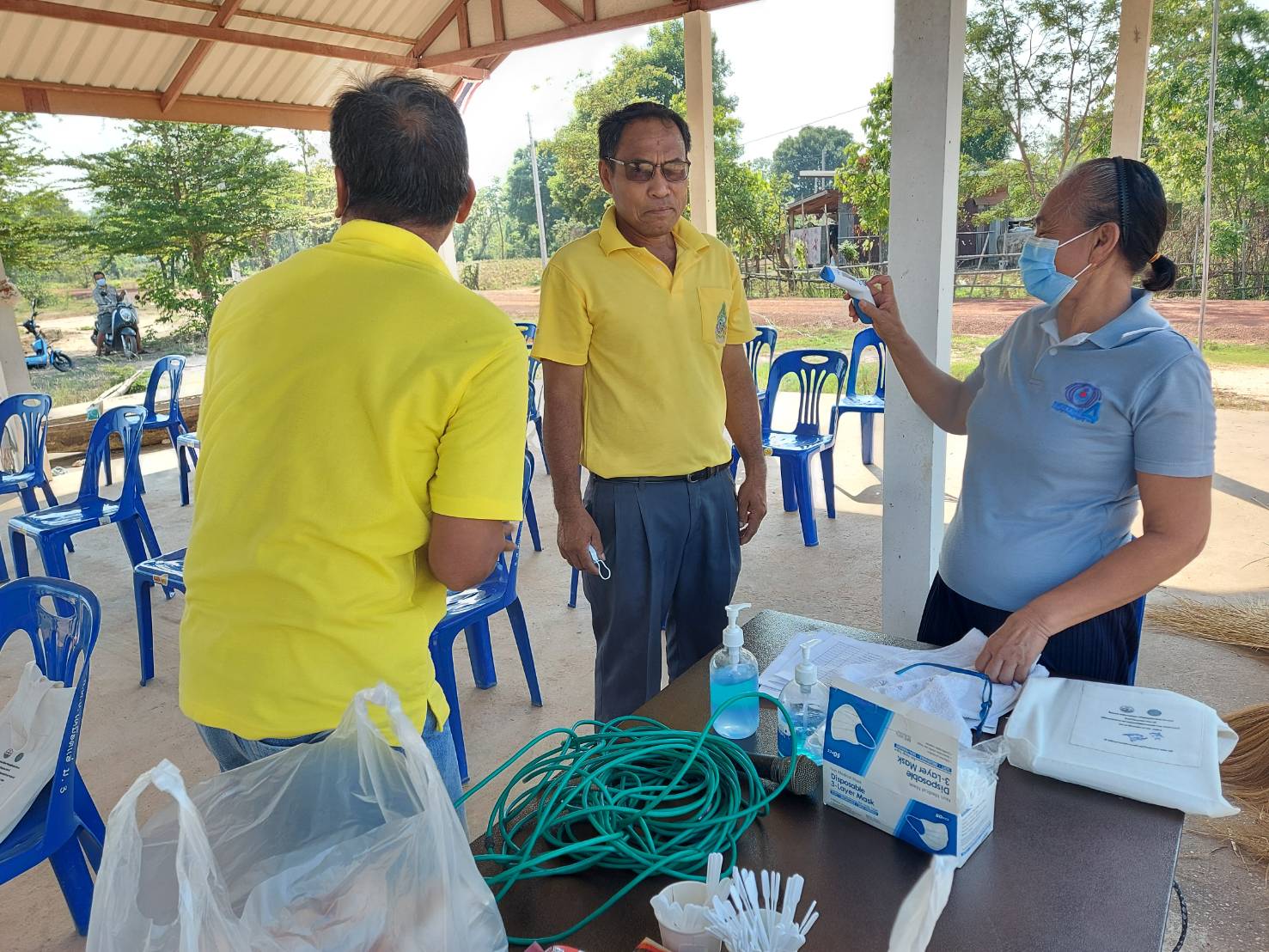 พร้อมด้วยเจ้าหน้าที่ รพสต.นาตาล นางสาวเสาวนีย์ อำนาจวงศ์ เจ้าพนักงานทันตสาธารณสุขชำนาญงาน นางสาวพุทธิดา ข้างน้อย เจ้าพนักงานสาธารณสุขปฎิบัติงาน  ให้ความรู้ คำแนะนำและประชาสัมพันธ์ การป้องกันตัวจากโควิท-19  ให้กับเจ้าหน้าที่ และชาวบ้านหมู่3และหมู่13ที่เข้าร่วมอบรม และคณะกรรมการบริหารจัดการแหล่งน้ำอ่างเก็บน้ำบ้านเหมือดแอ่