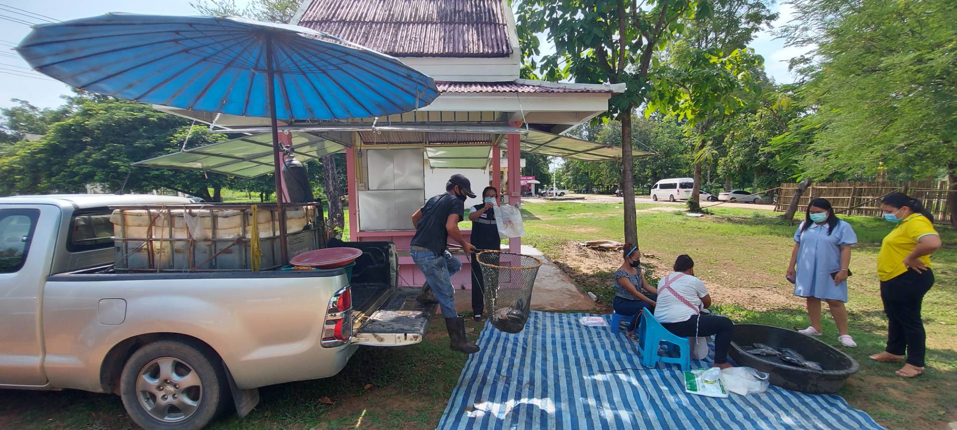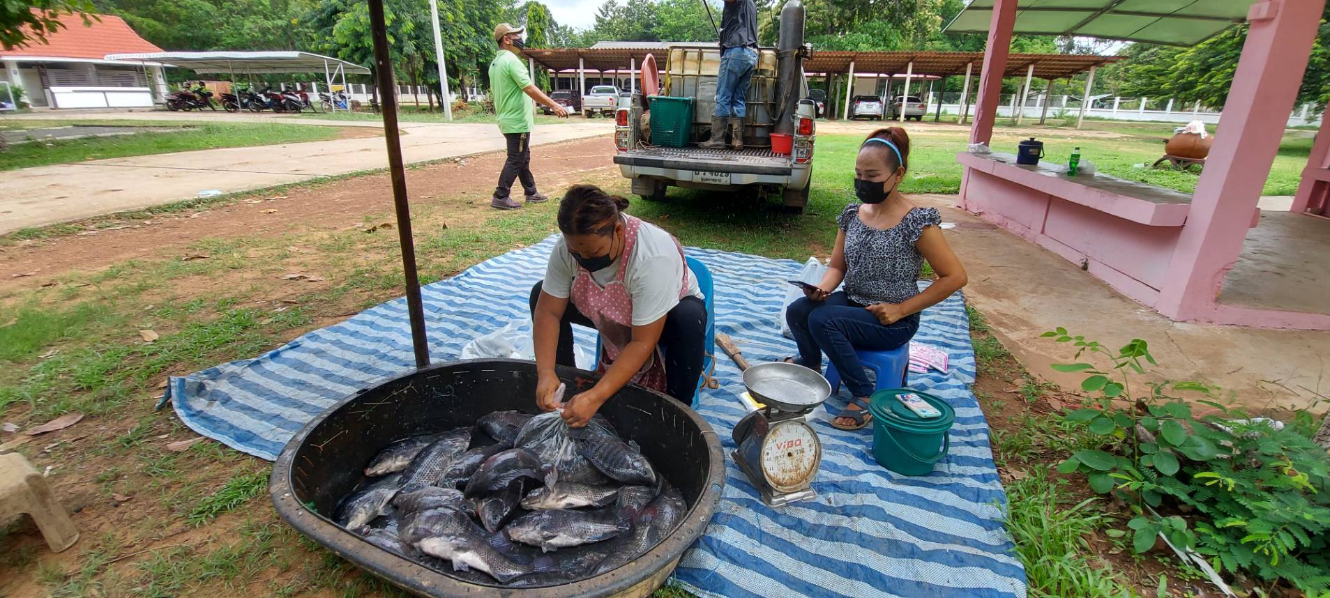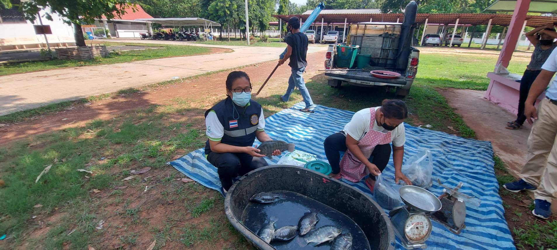 วันที่ 19 พฤษภาคม 2564 นางสาวหรรษา  ชิตกุล ประมงอำเภอตระการพืชผล ผู้รับผิดชอบงานด้านประมงอำเภอดอนมดแดง ดำเนินการจัดหาสถานที่อำนวยความสะดวกในการจำหน่ายสินค้าปลานิลกระชัง เพื่อช่วยเหลือเกษตรกรผู้เพาะเลี้ยงปลานิลกระชัง ในอำเภอดอนมดแดง นำปลานิลกระชังมาจำหน่ายบริเวณ หน้าที่ว่าการอำเภอดอนมดแดง  ขายได้ทั้งหมดหมดจำนวน 200 กิโลกรัม