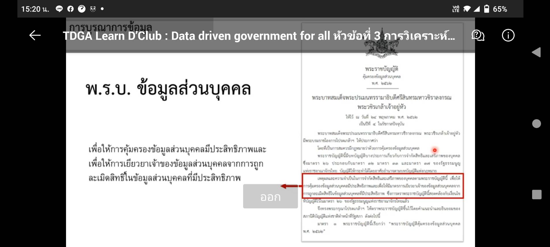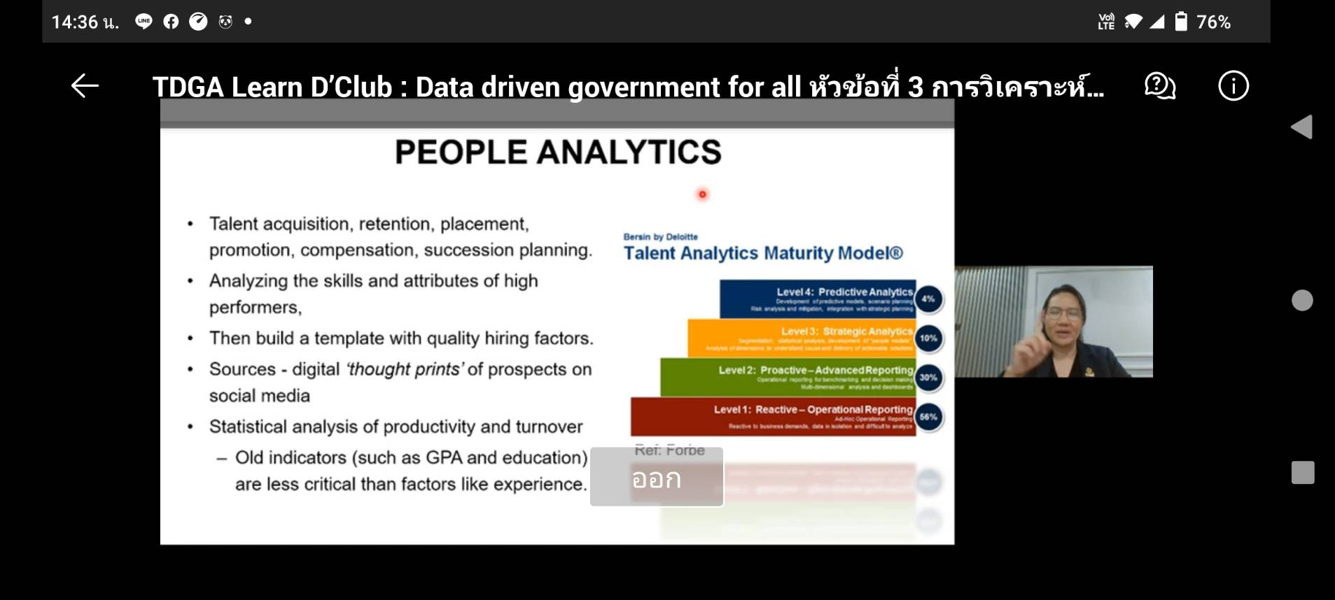 3. เวลา 14.30 น. นายประชุม ดวนใหญ่ หัวหน้ากลุ่มพัฒนาและส่งเสริมอาชีพการประมง นางสาวศิริรัตน์ อุทัยวัฒน์ เจ้าพนักงานประมง และนายบัญชา ไกยสิทธิ์ นักวิชาการประมง เข้าร่วมอบรมทักษะดิจิทัลแบบ online หลักสูตรการขับเคลื่อนรัฐบาลด้วยข้อมูลเพื่อทุกภาคส่วน (Data driven government for all) ซึ่งวันนี้อบรมเรื่อง การวิเคราะห์ข้อมูลเพื่อการใช้ประโยชน์สำหรับหน่วยงานภาครัฐ โดยการอบรมในครั้งนี้ทำให้เจ้าหน้าที่มีความรู้เรื่อง การพัฒนาฐานข้อมูลด้วยการใช้ program dashboard การวิเคราะห์การจ้างงานภาครัฐกับการใช้เทคโนโลยี AI และ พ.ร.บ. ข้อมูลส่วนบุคคล ซึ่งองค์ความรู้ต่างๆเหล่านี้สามารถโดยเฉพาะการพัฒนาฐานข้อมูลด้วยการใช้ program dashboard ที่สามารถนำมาเป็น platform ของการจัดเก็บข้อมูล เช่น ข้อมูลทะเบียนเกษตรกรผู้เพาะเลี้ยงสัตว์น้ำ การเปรียบเทียบปริมาณผลผลิต และความรู้เรื่อง พ.ร.บ. ข้อมูลส่วนบุคคล ที่จำเป็นต่อการนำมาใช้เพื่อประกอบการปฏิบัติงานยิ่งในองค์กรที่มีลูกค้าจำนวนมาก เช่น เกษตรกรที่ขึ้นทะเบียนด้านการประมงเป็นต้น