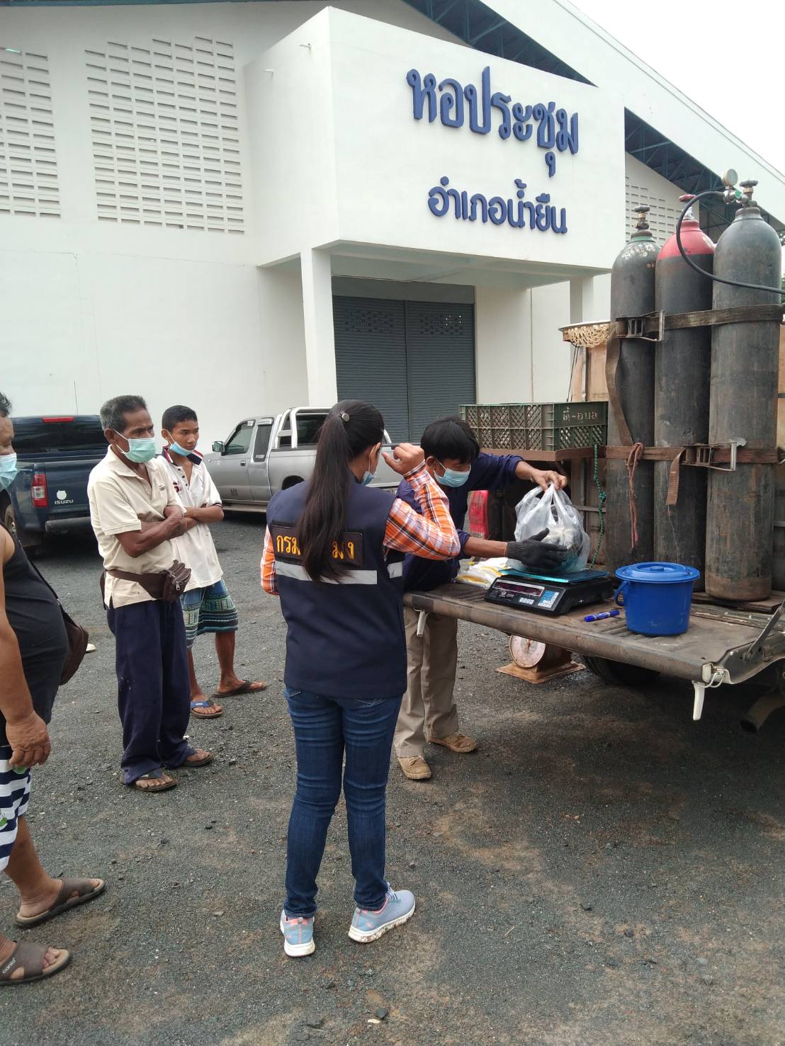 ประมงอำเภอน้ำยืน ดำเนินการจัดหาสถานที่อำนวยความสะดวกในการจำหน่ายสินค้าปลานิลกระชัง เพื่อช่วยเหลือเกษตรกรผู้เพาะเลี้ยงปลานิลกระชังในอำเภอสิรินธร