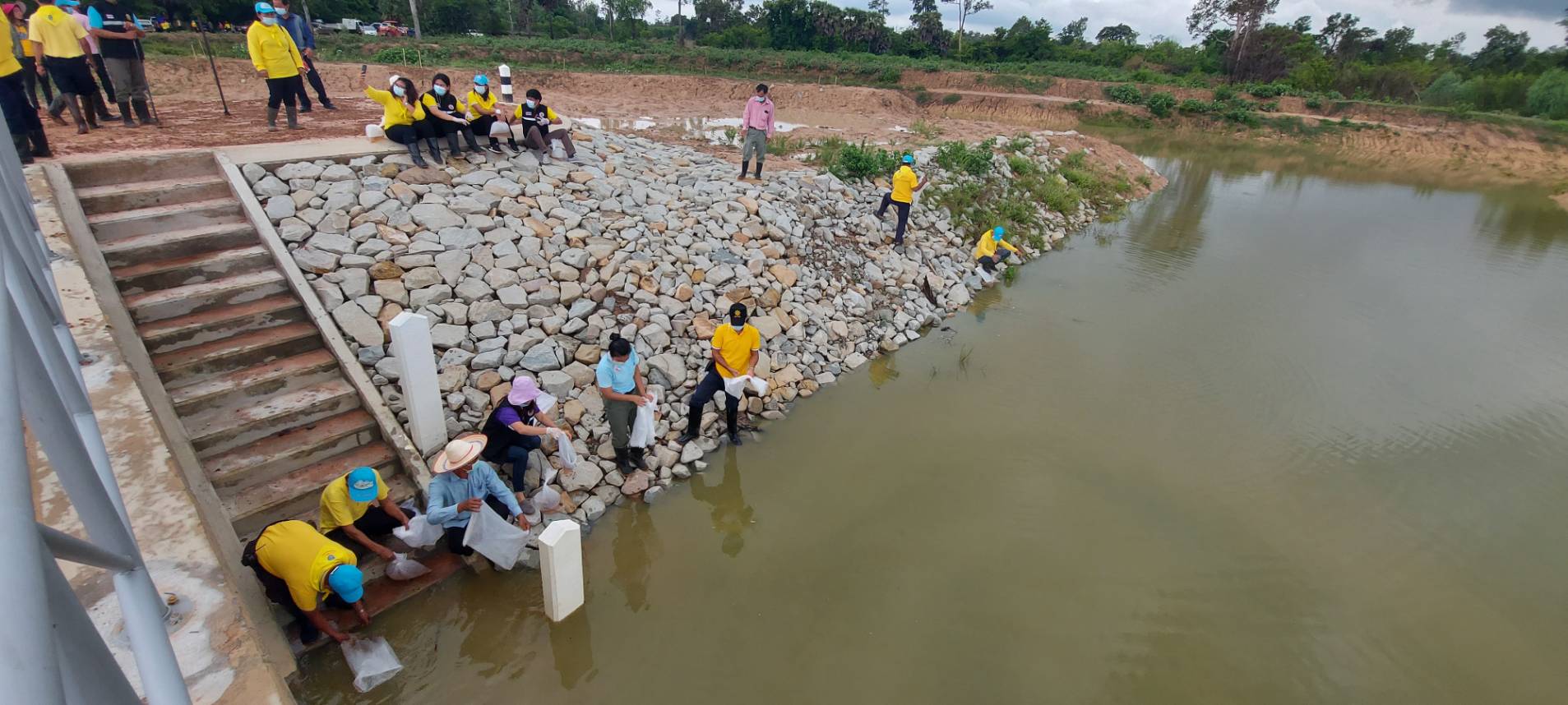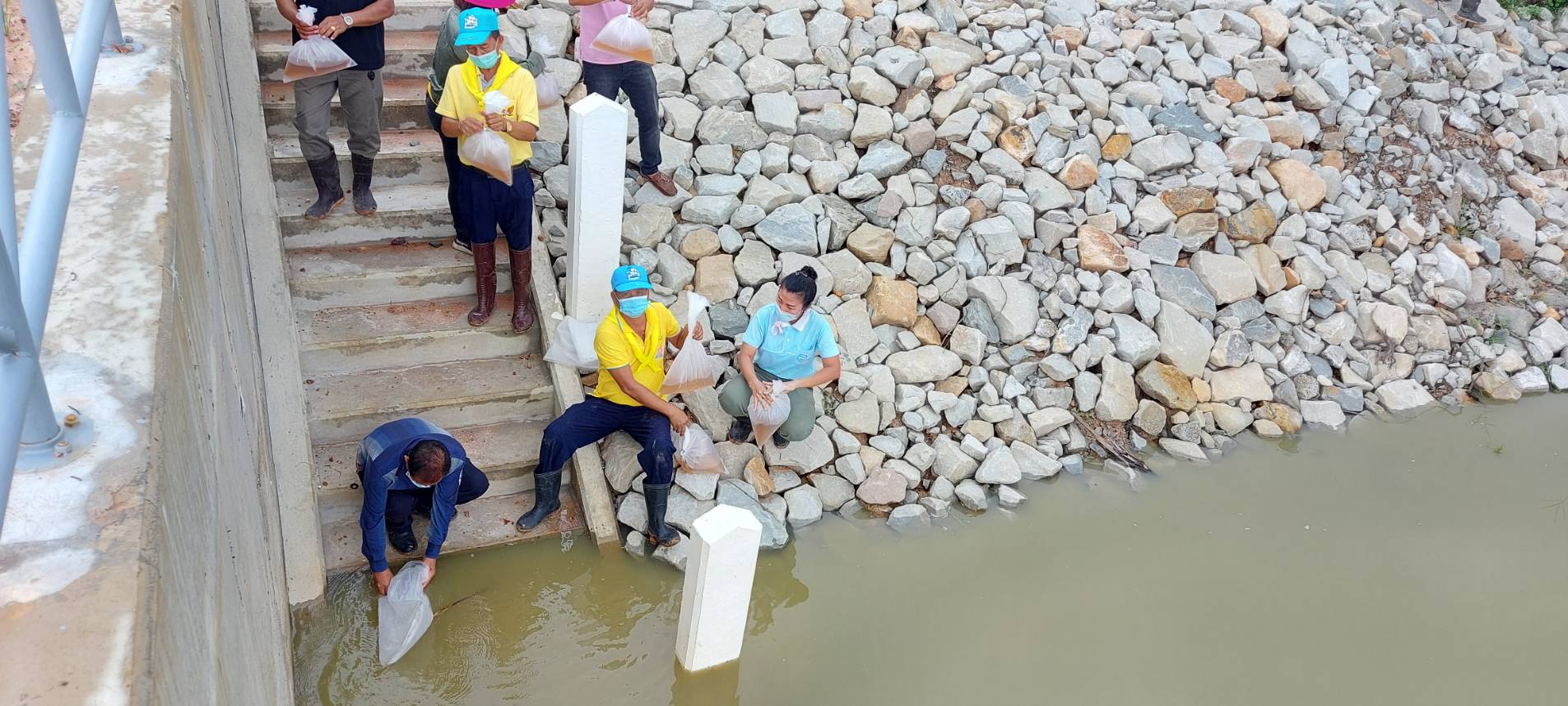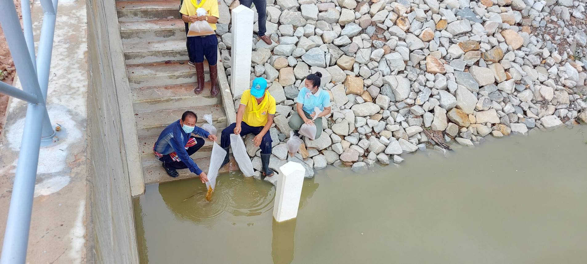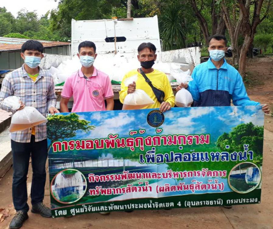 โดยได้รับการสนับสนุนพันธุ์กุ้งก้ามกรามจากศูนย์วิจัยและพัฒนาประมงน้ำจืดอุบลราชธานี
