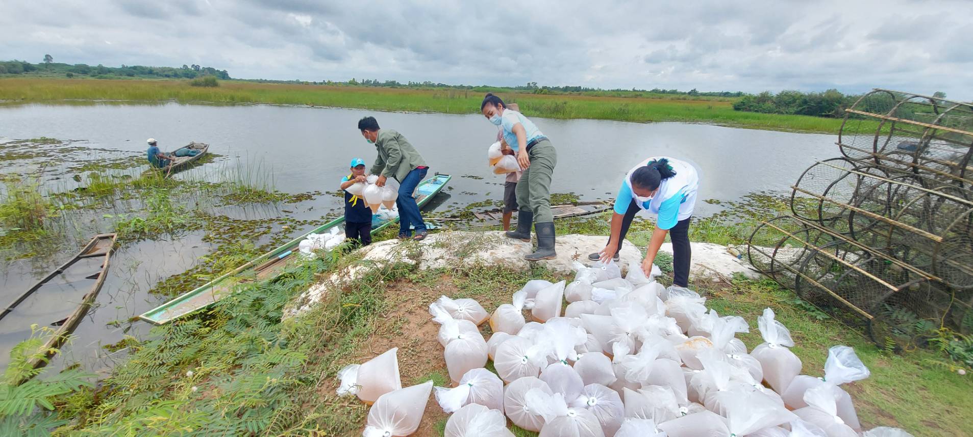 ประมงอำเภอสว่างวีระวงศ์ ร่วมกับเทศบาลตำบลบุ่งมะแลง และนายมนัส พิศพงศ์ผู้ใหญ่บ้านบุ่งมะแลงใต้ ม.4  ต.บุ่งมะแลง อ.สว่างวีระวงศ์  จ.อุบลราชธานี